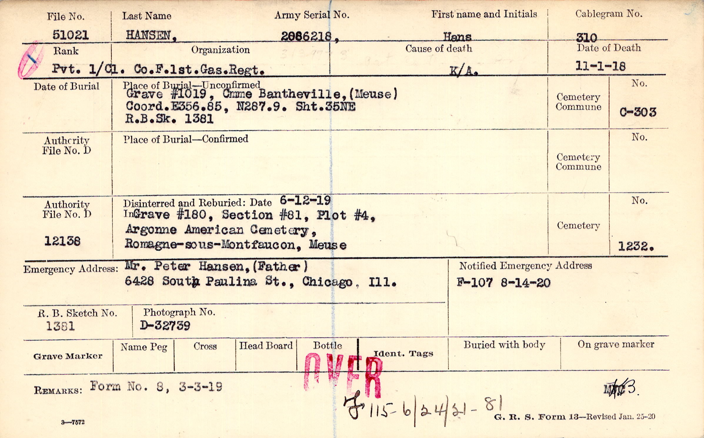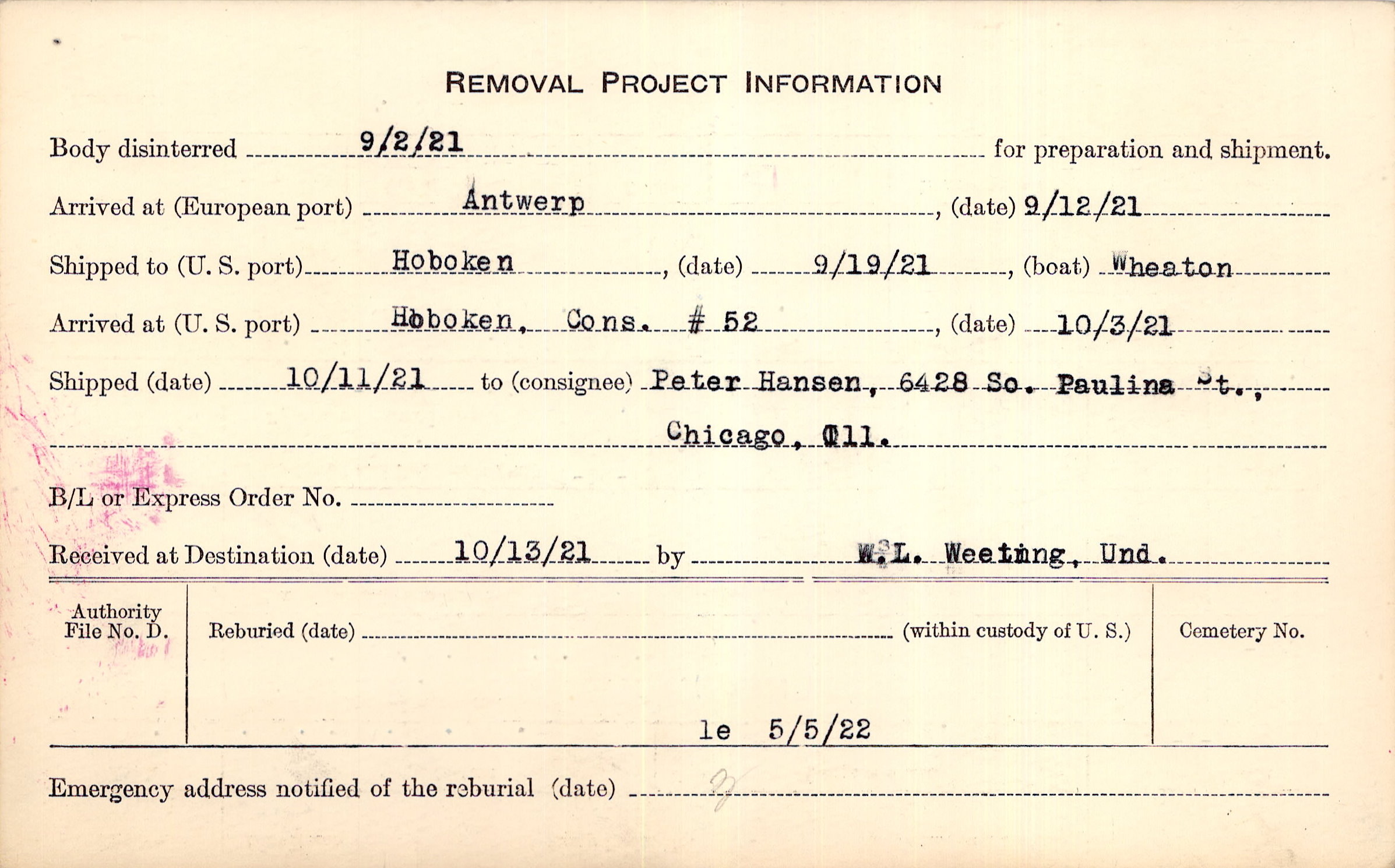 Mr. Peter Hansen, (Father), 6428 South Paulina St., Chicago, Ill.