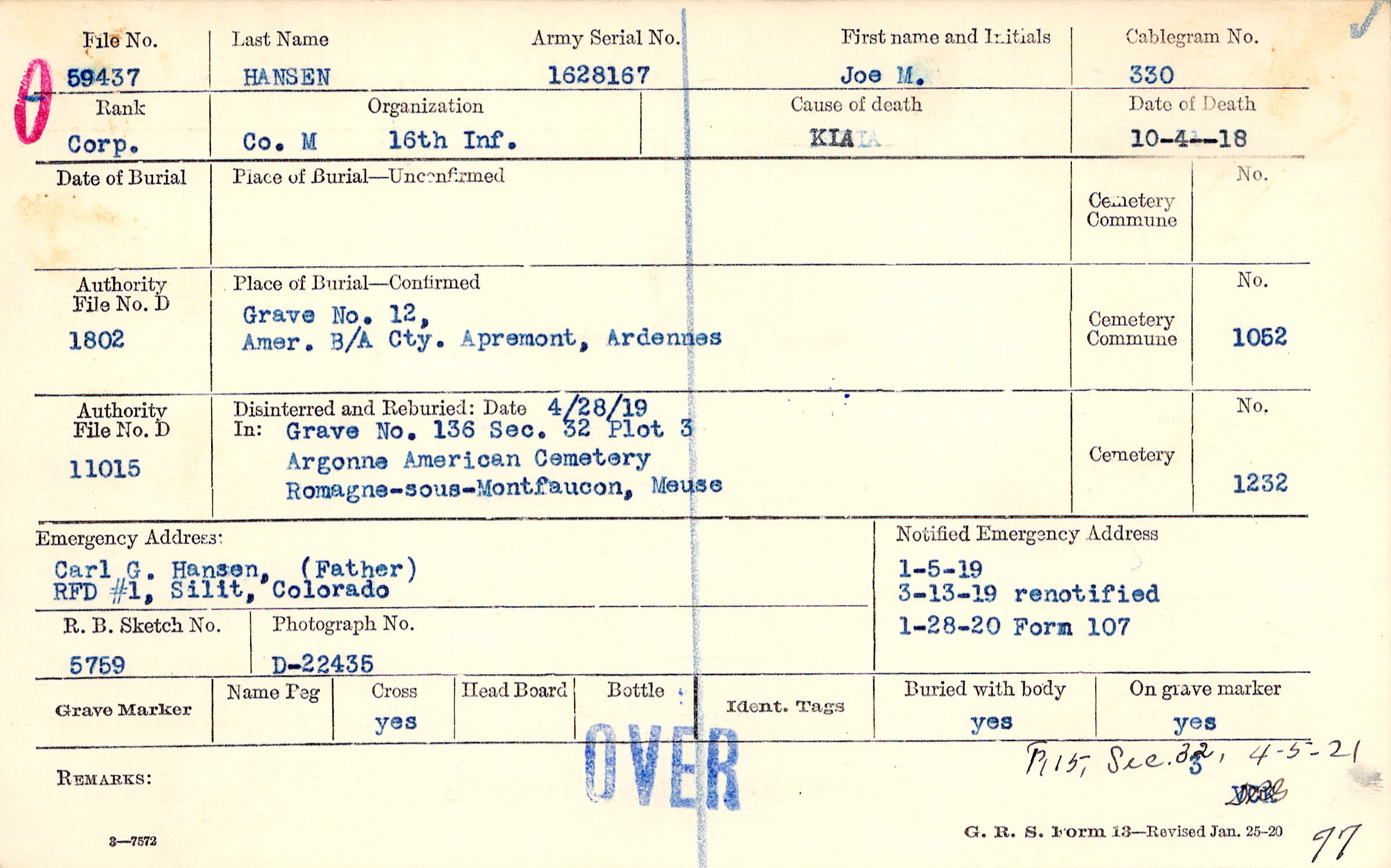 Grave 12, Amer. B/A Cty., Apremont, Ardennes