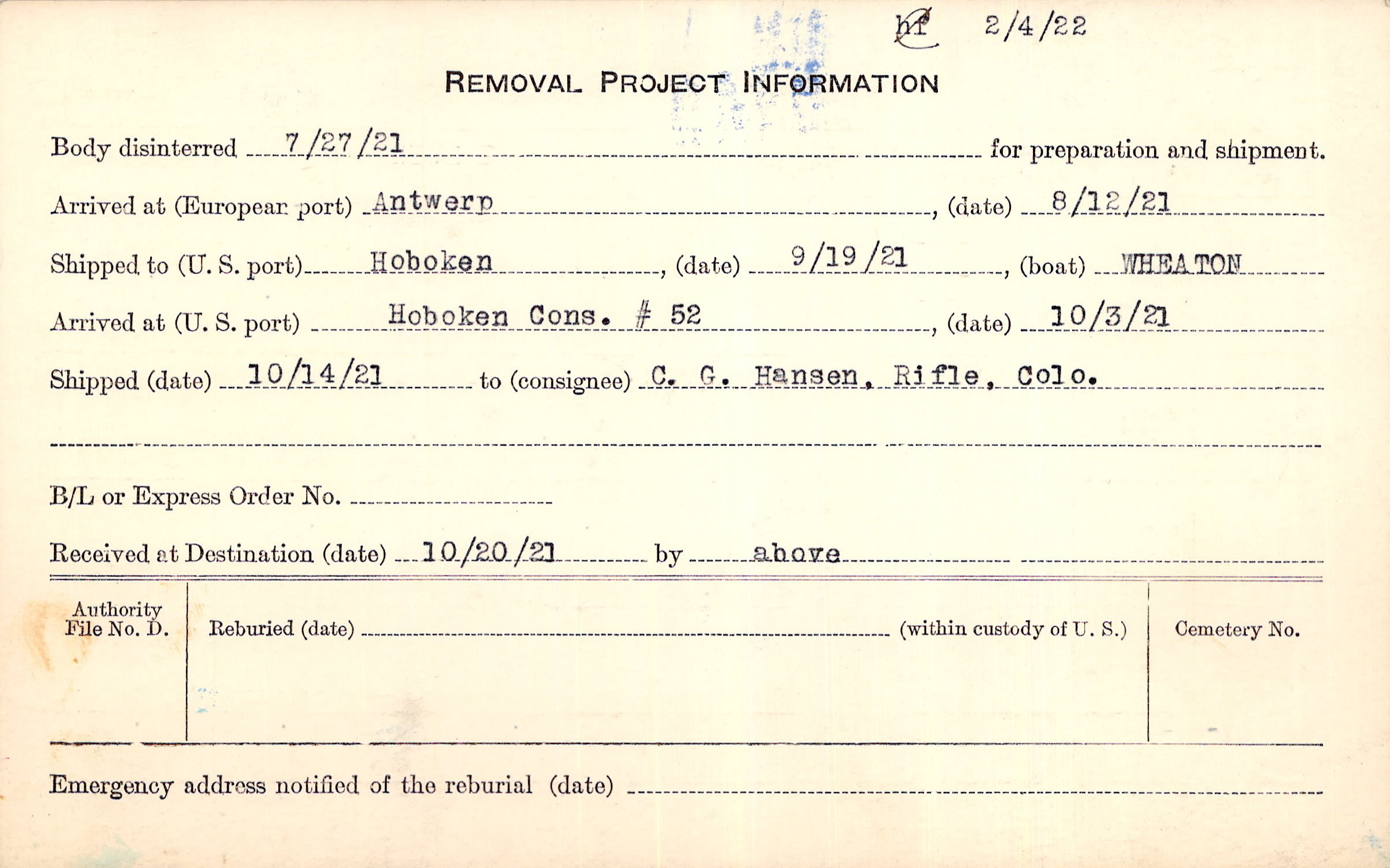 Carl G. Hansen, (Father), RFD #1, Silit, Colorado