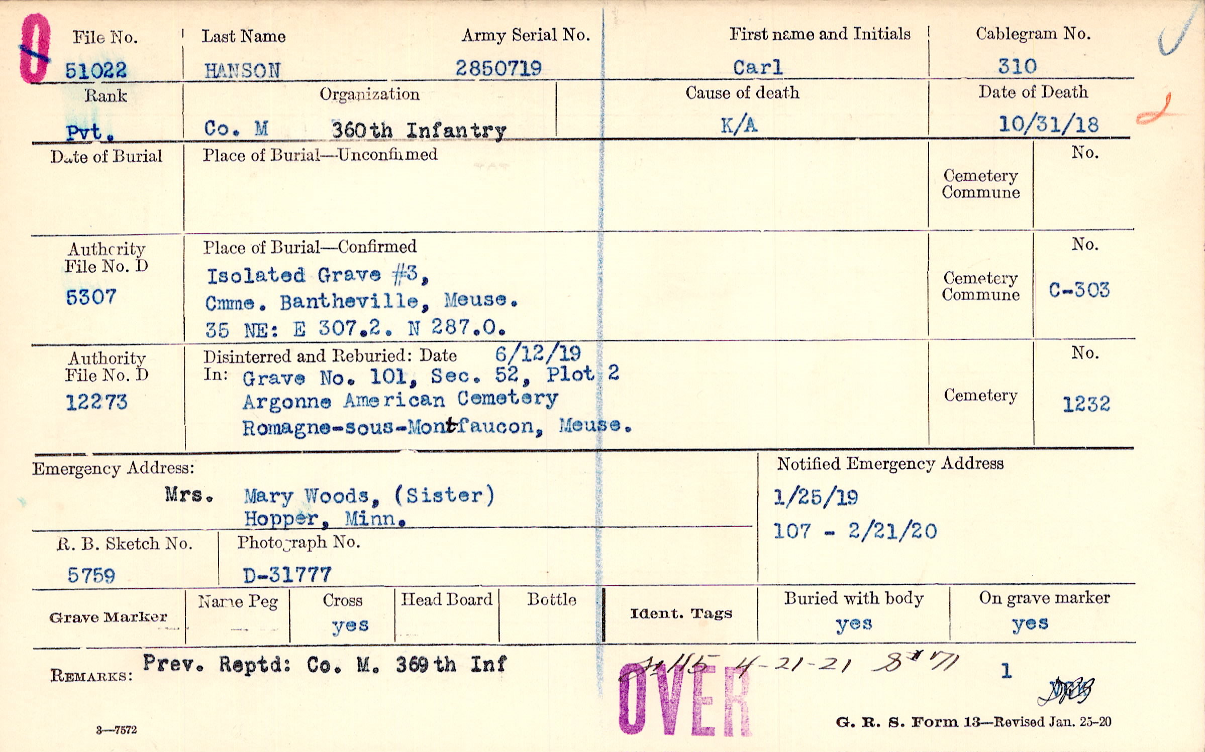 | Reburied (date): |