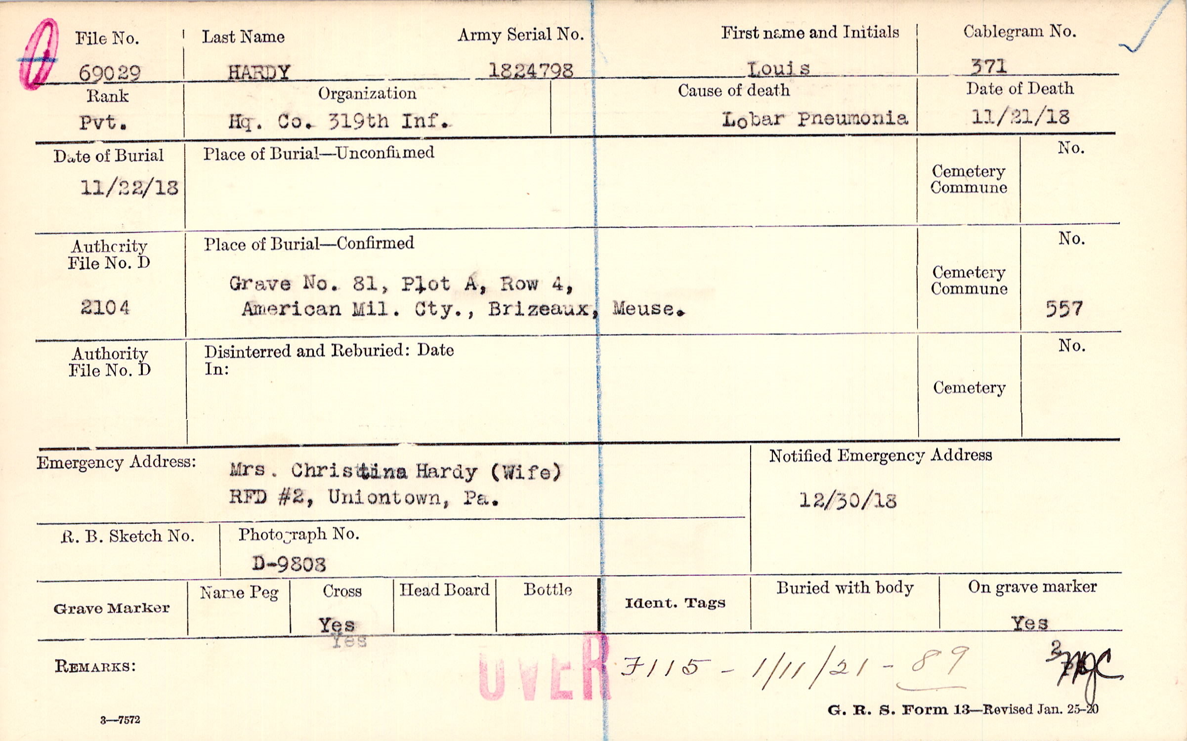 Grave 81, Plot A, Row 4, American Mil. Cty., Brizeaux, Meuse