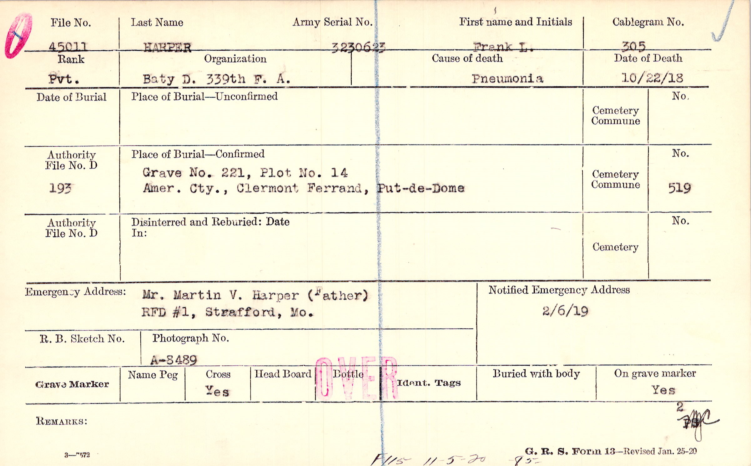 Grave 221, Plot 14, Amer. Cty., Clermont Ferrand, Put-de-Dome