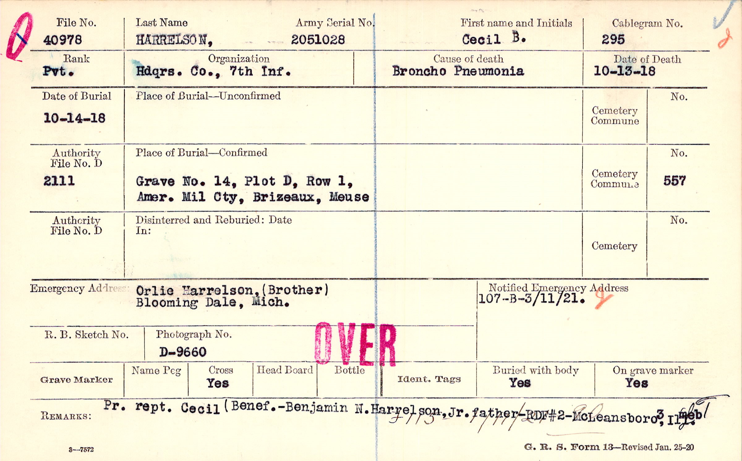 Grave 14, Plot D, Row 1, Amer. Mil Cty, Brizeaux, Meuse
