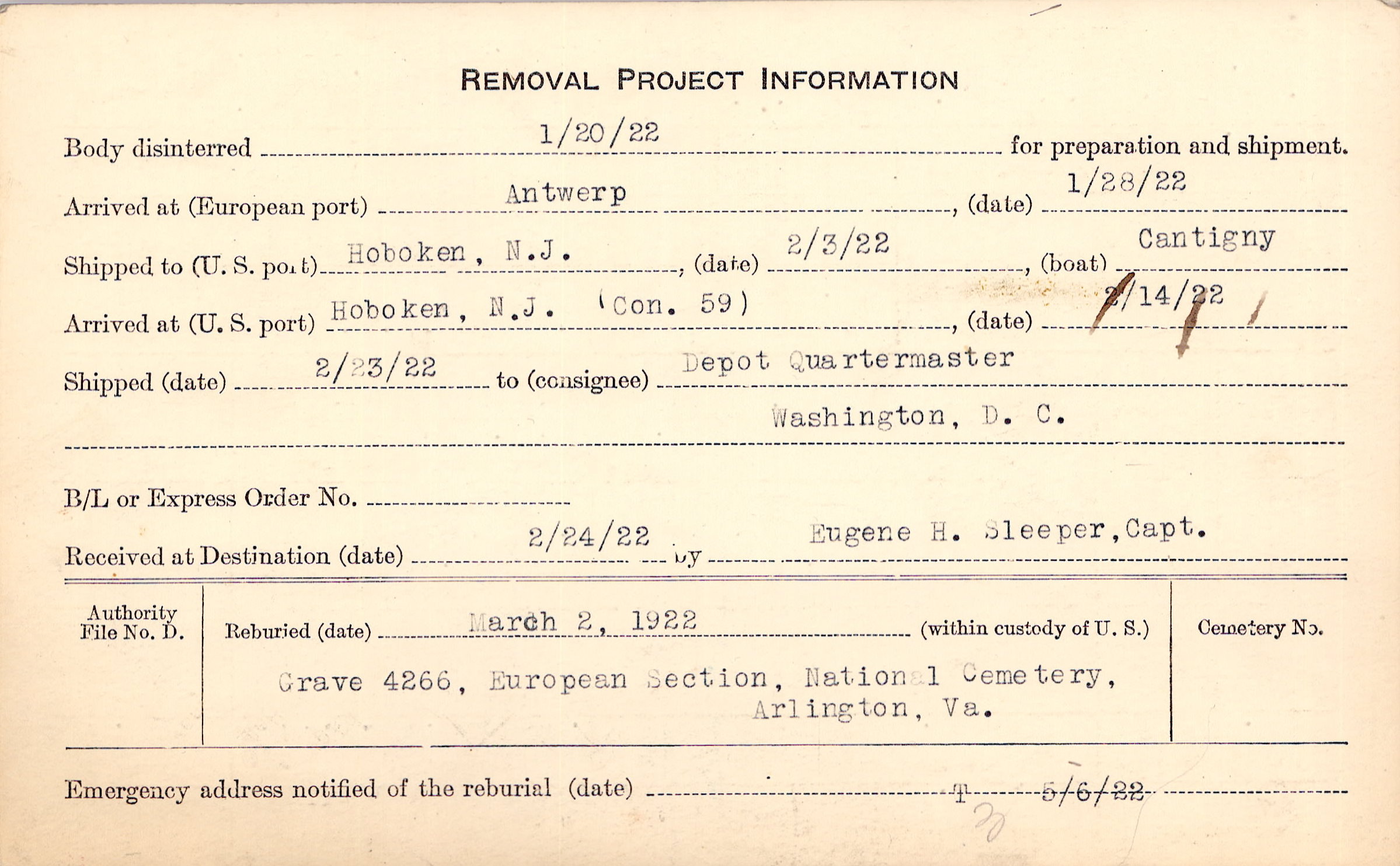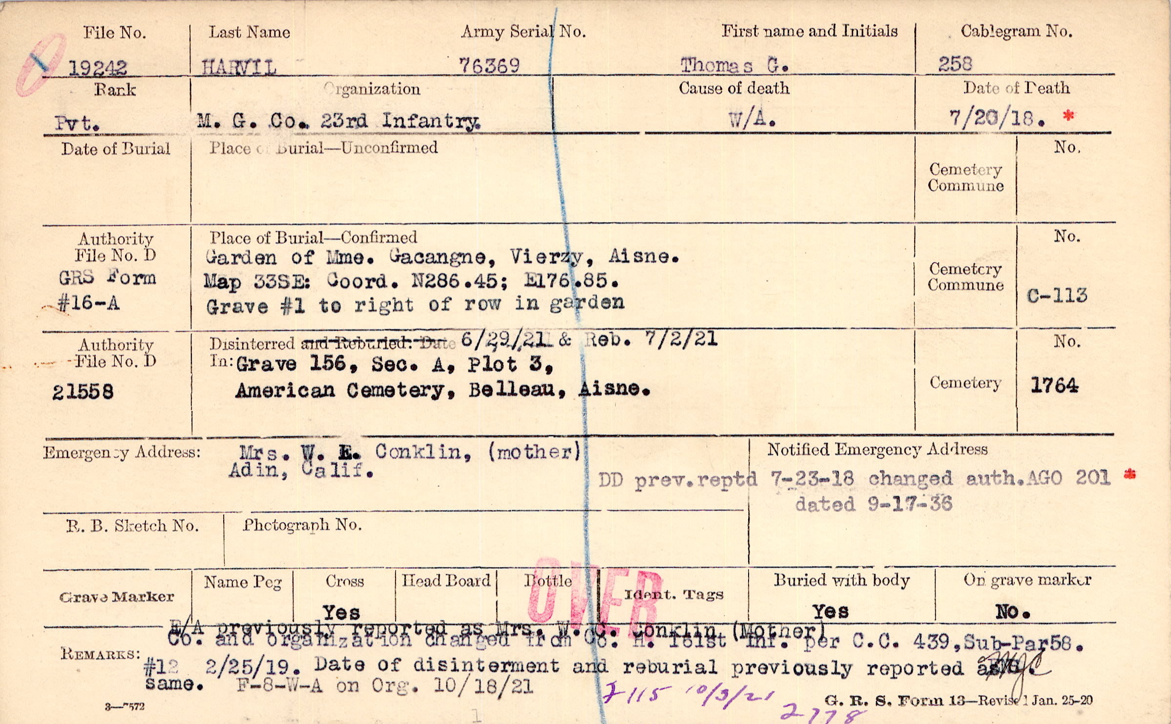 Grave 156, Section A, Plot 3, American Cemetery, Belleau, Aisne