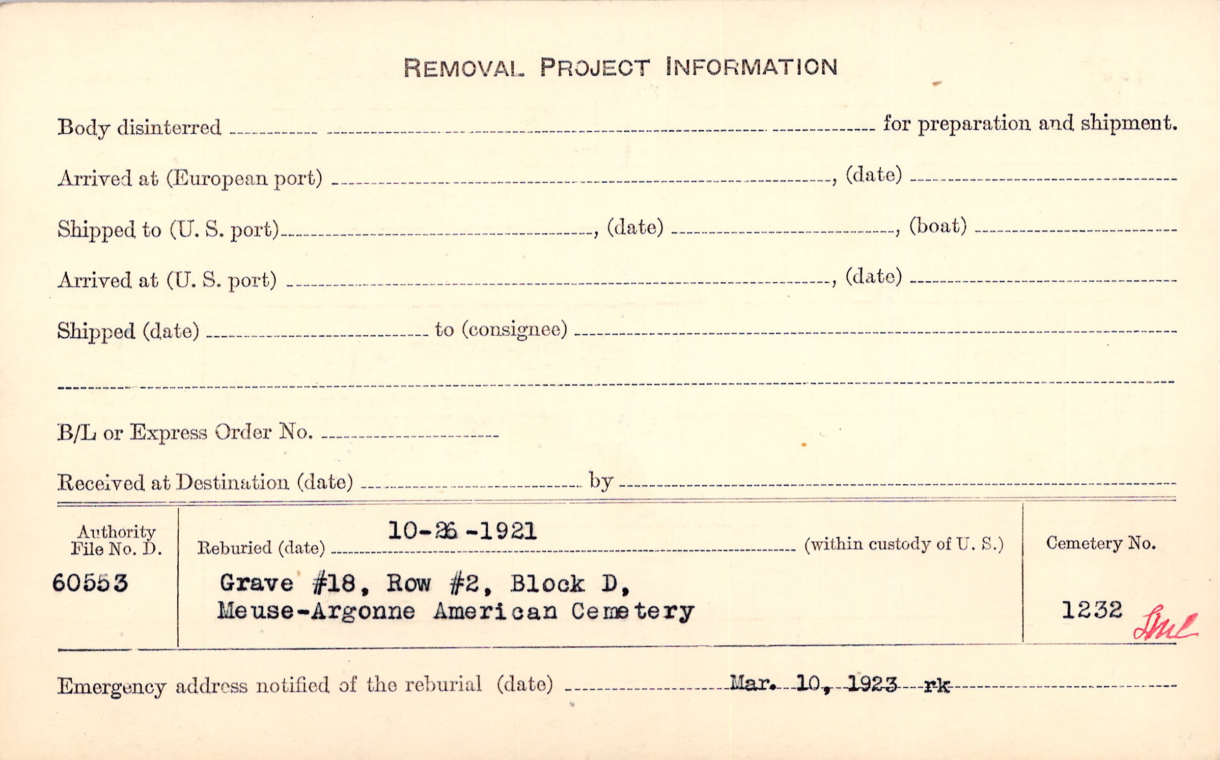 | Permanent Burial in Foreign Cemetery |