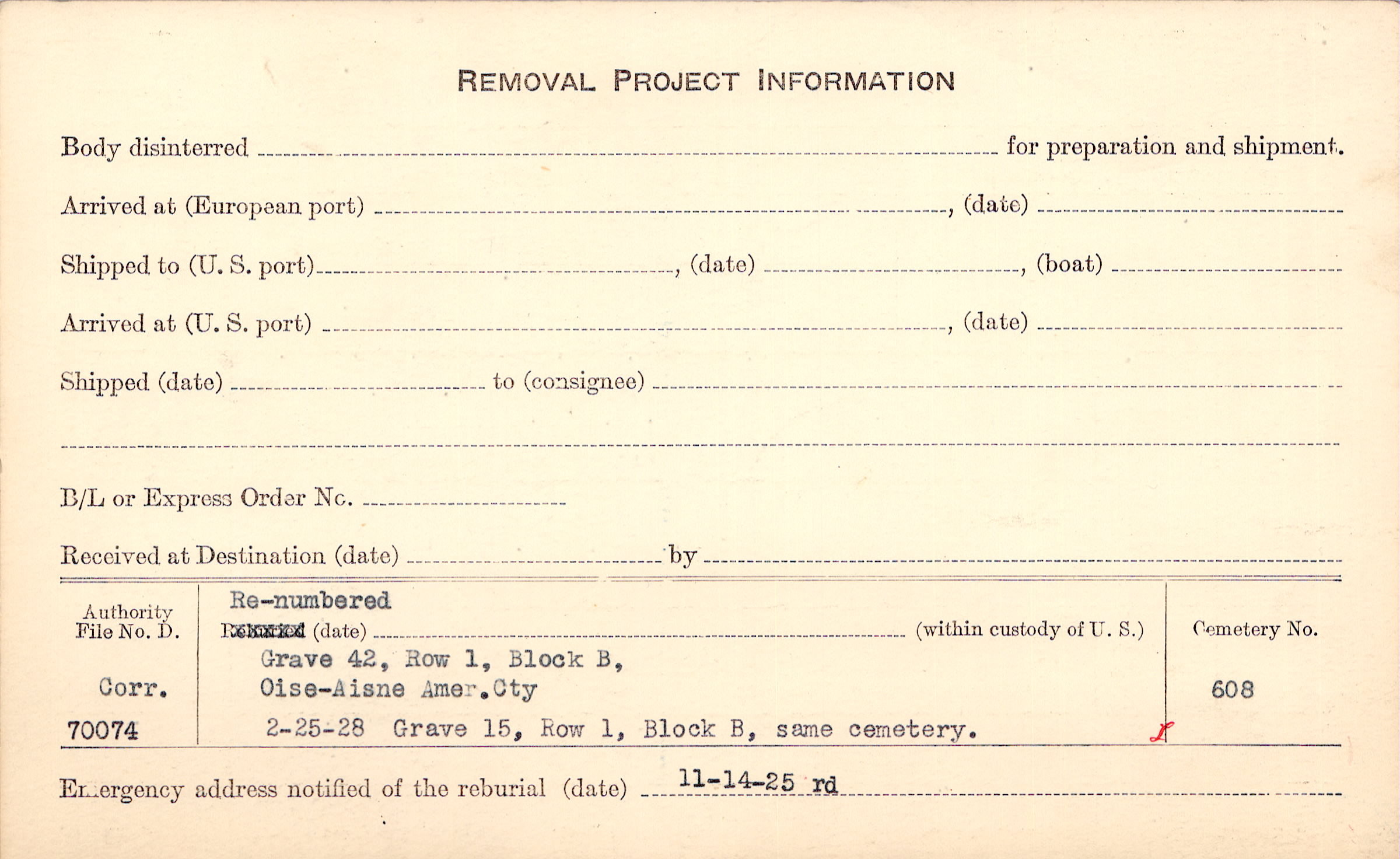 Prior Burial in Foreign Cemetery |