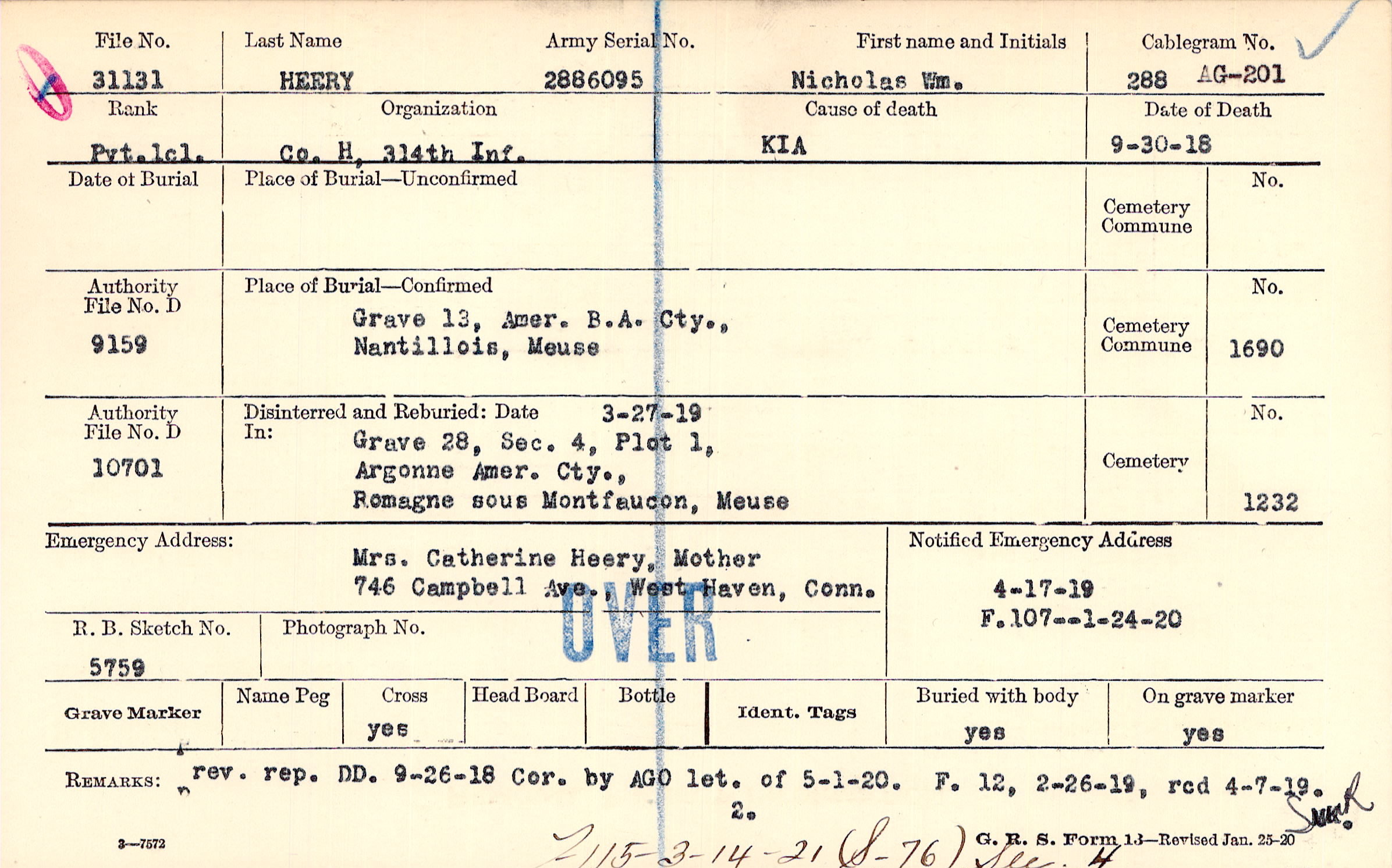 Grave 13, Amer. B/A Cty., Nantillois, Meuse
