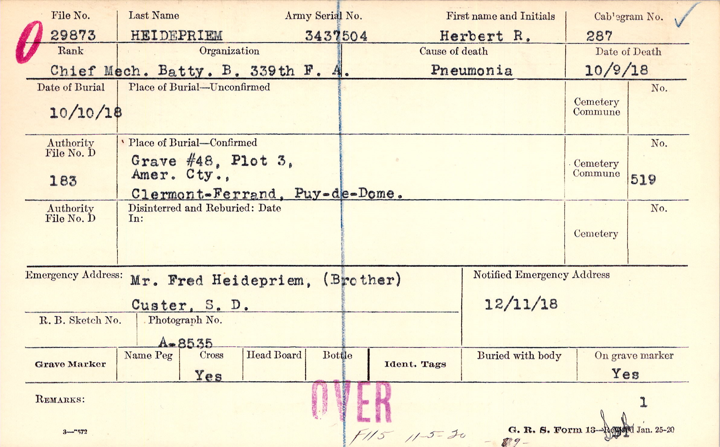 Grave #48, Plot 3, Amer. Cty., Clermont-Ferrand, Puy-de-Dome.