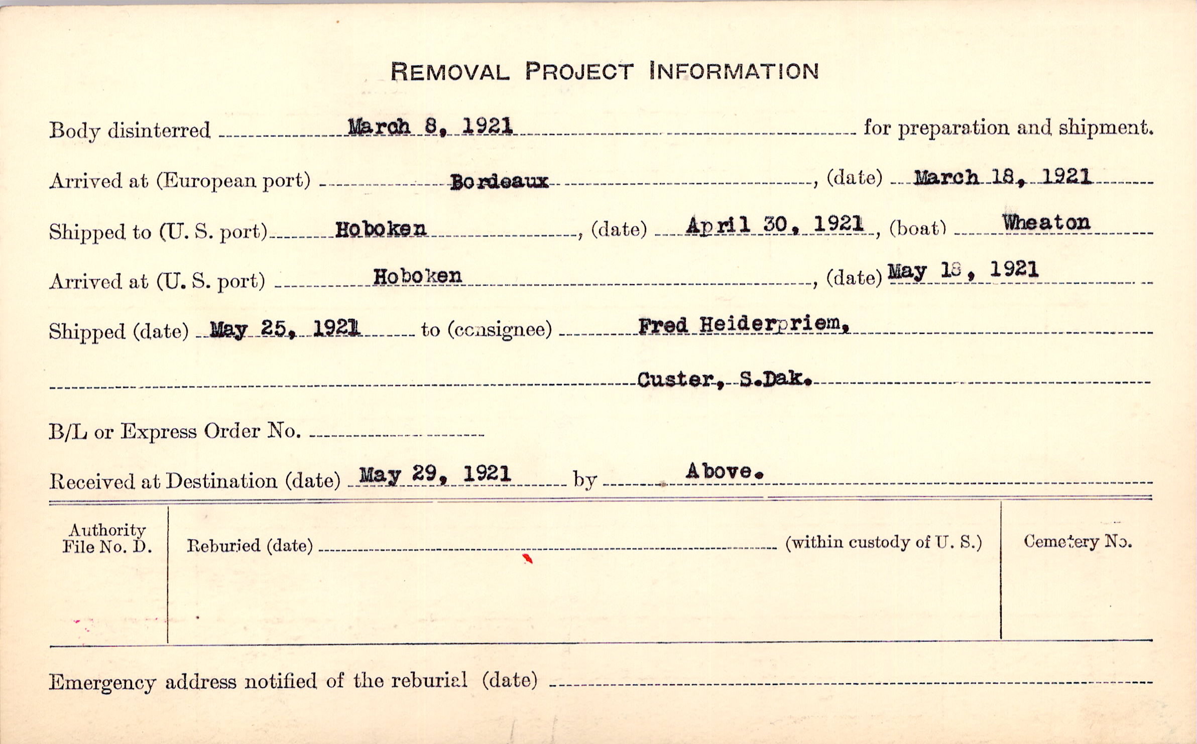 Mr. Fred Heidepriem, (Brother), Custer, S.D.