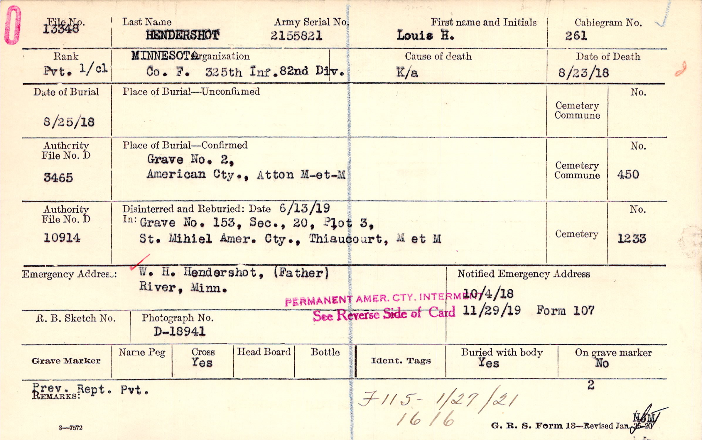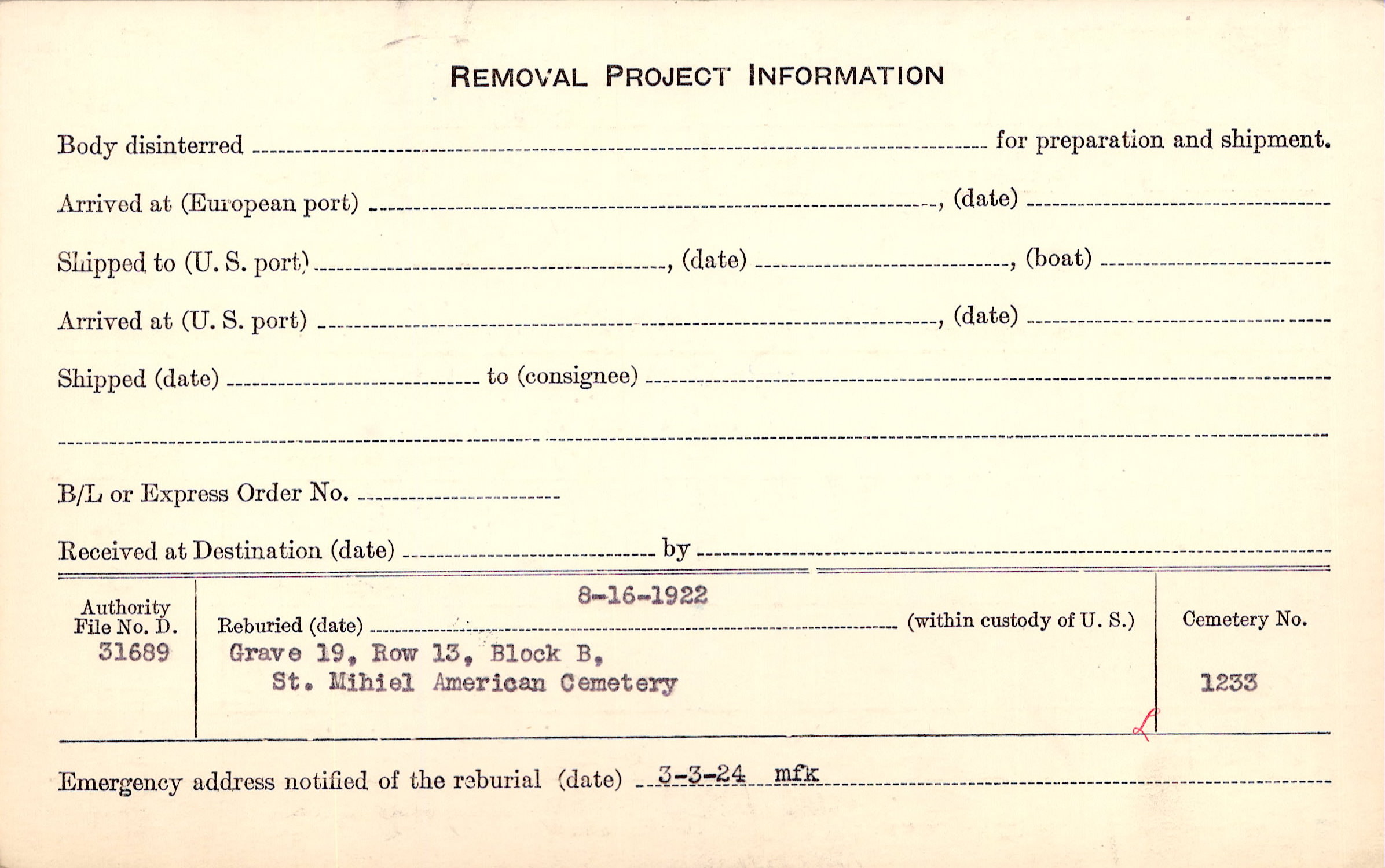 Grave 153, Section 20, Plot 3, St. Mihiel American Cemetery, Thiaucourt, Meurthe-et-Moselle