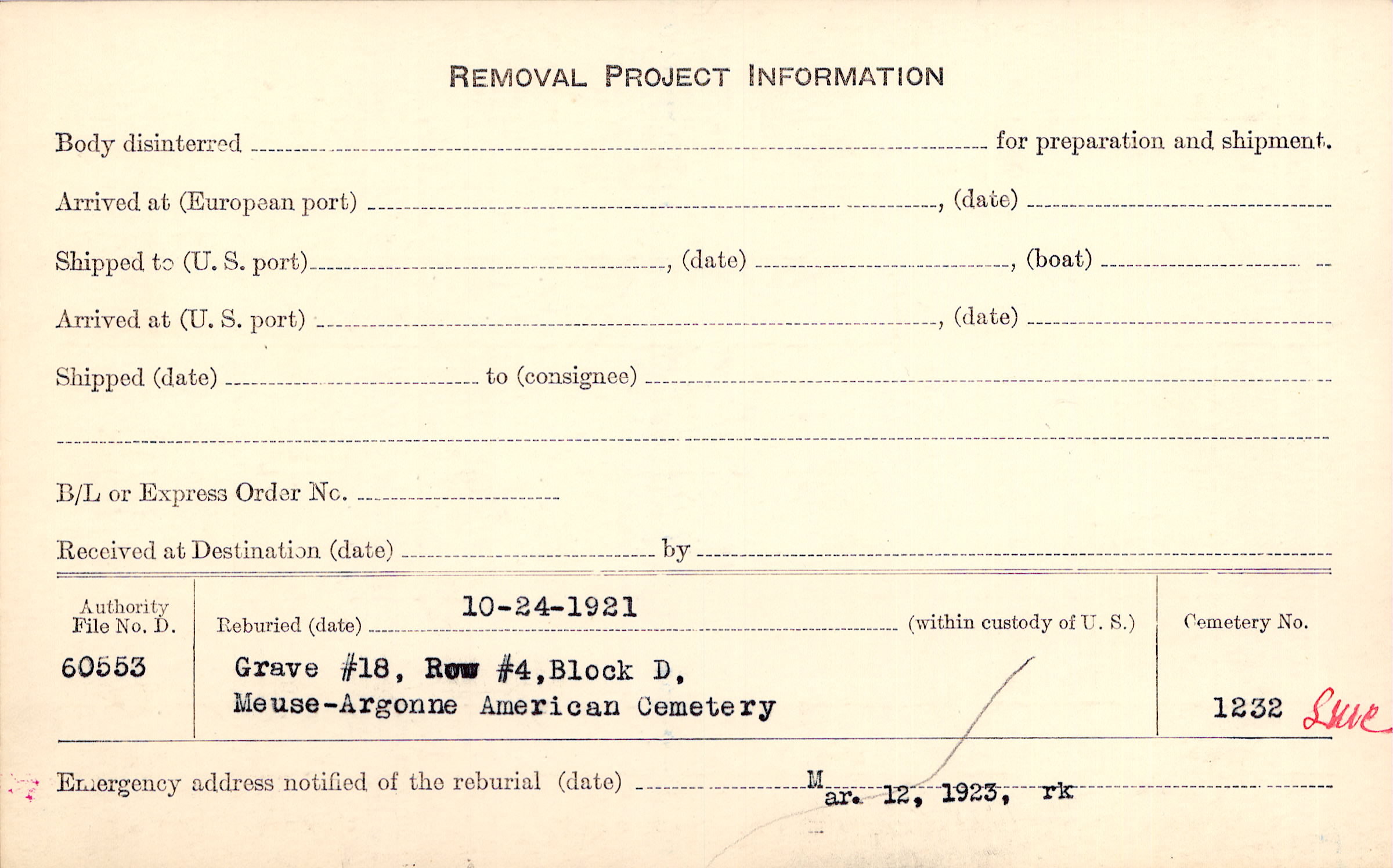 | Permanent Burial in Foreign Cemetery |