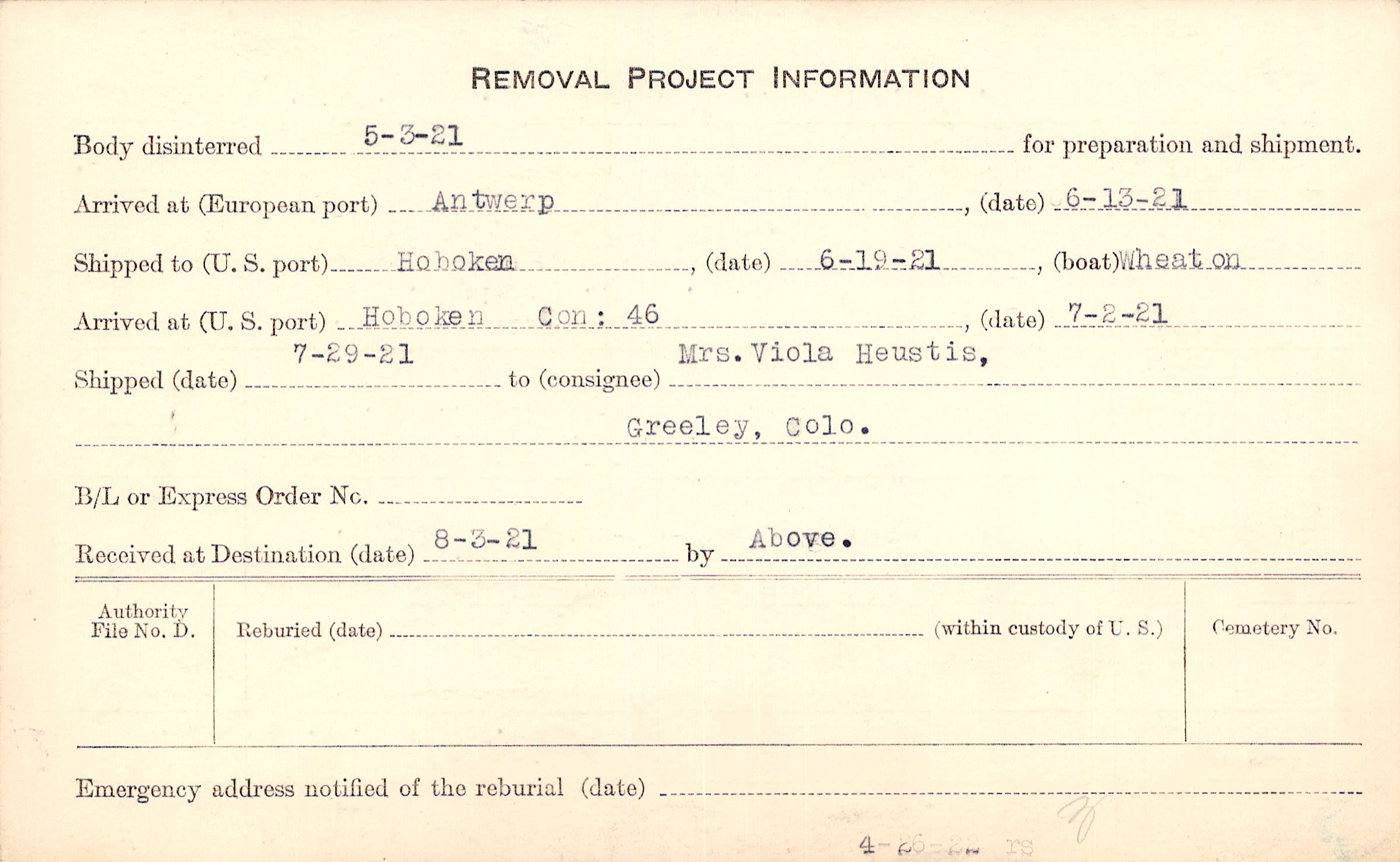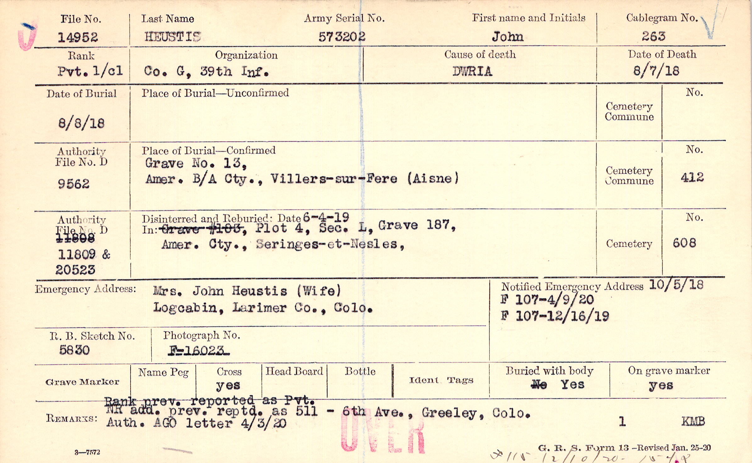 Rank prev. reported as Pvt. NR add. prev. reptd. as 511 - 6th Ave., Greeley, Colo. Auth. AGO letter 4/3/20, F115 12/10/20 1542