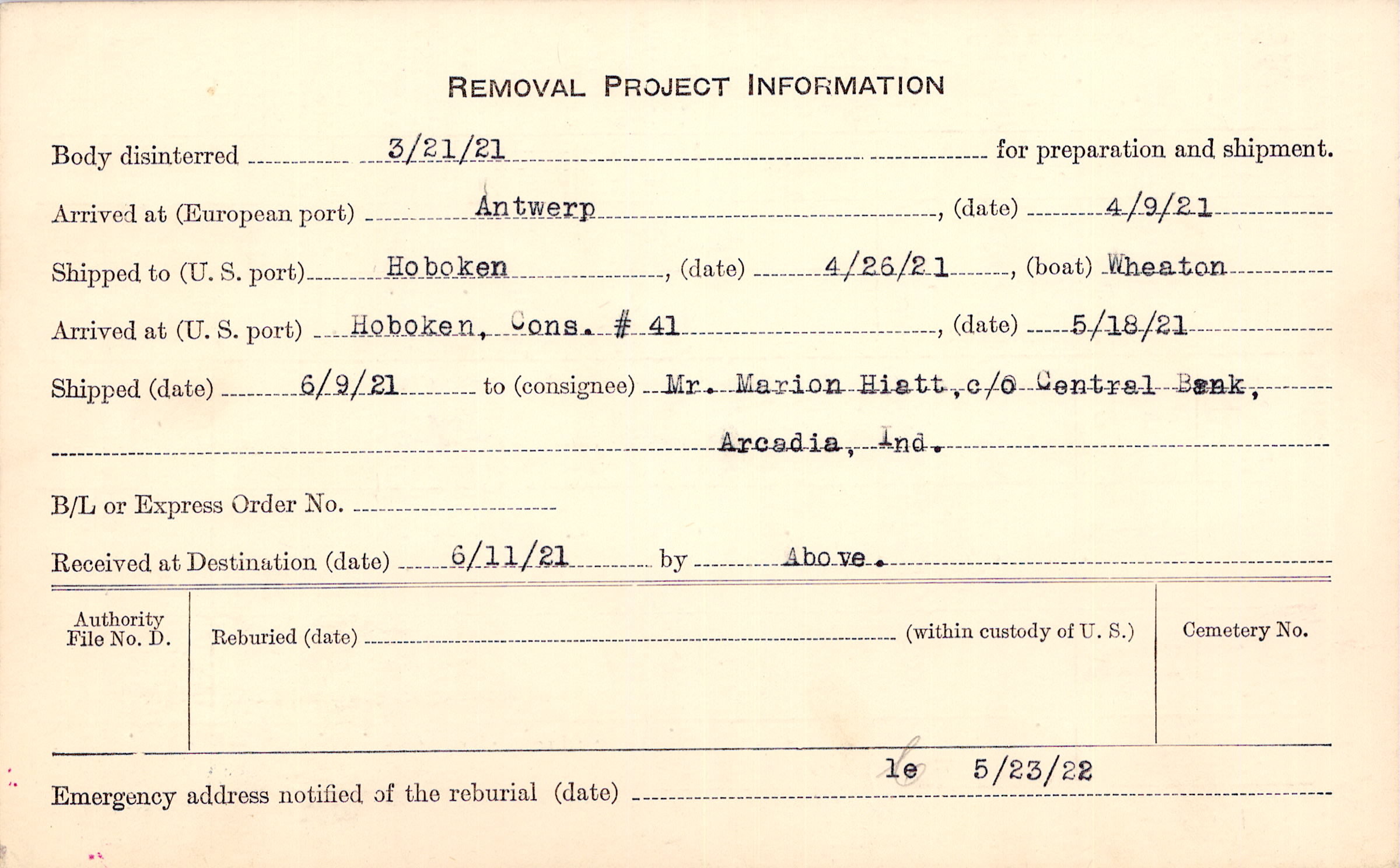 to Mr. Marion Hiatt, c/o Central Bank, Arcadia, Ind.