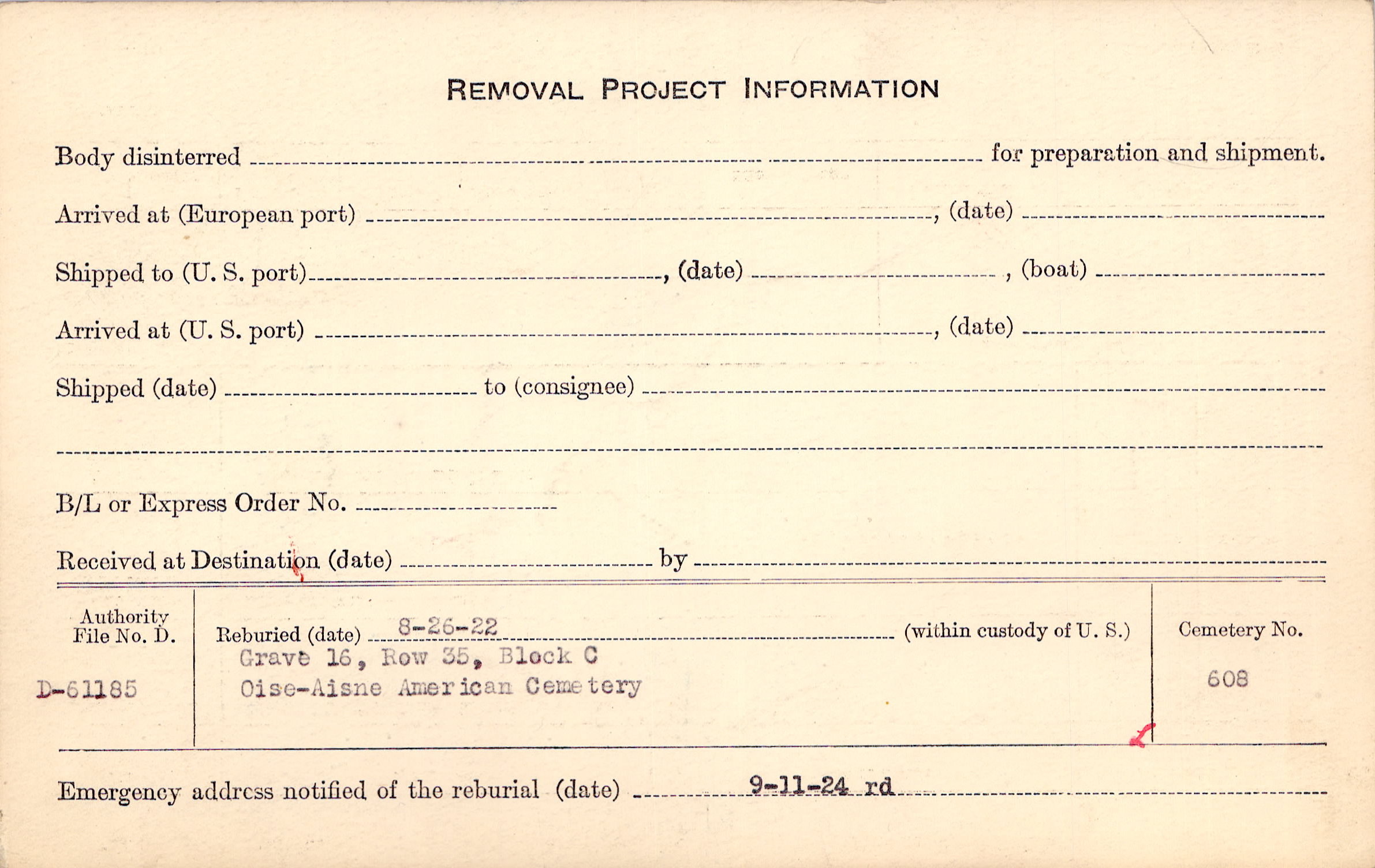 | Permanent Burial in Foreign Cemetery |