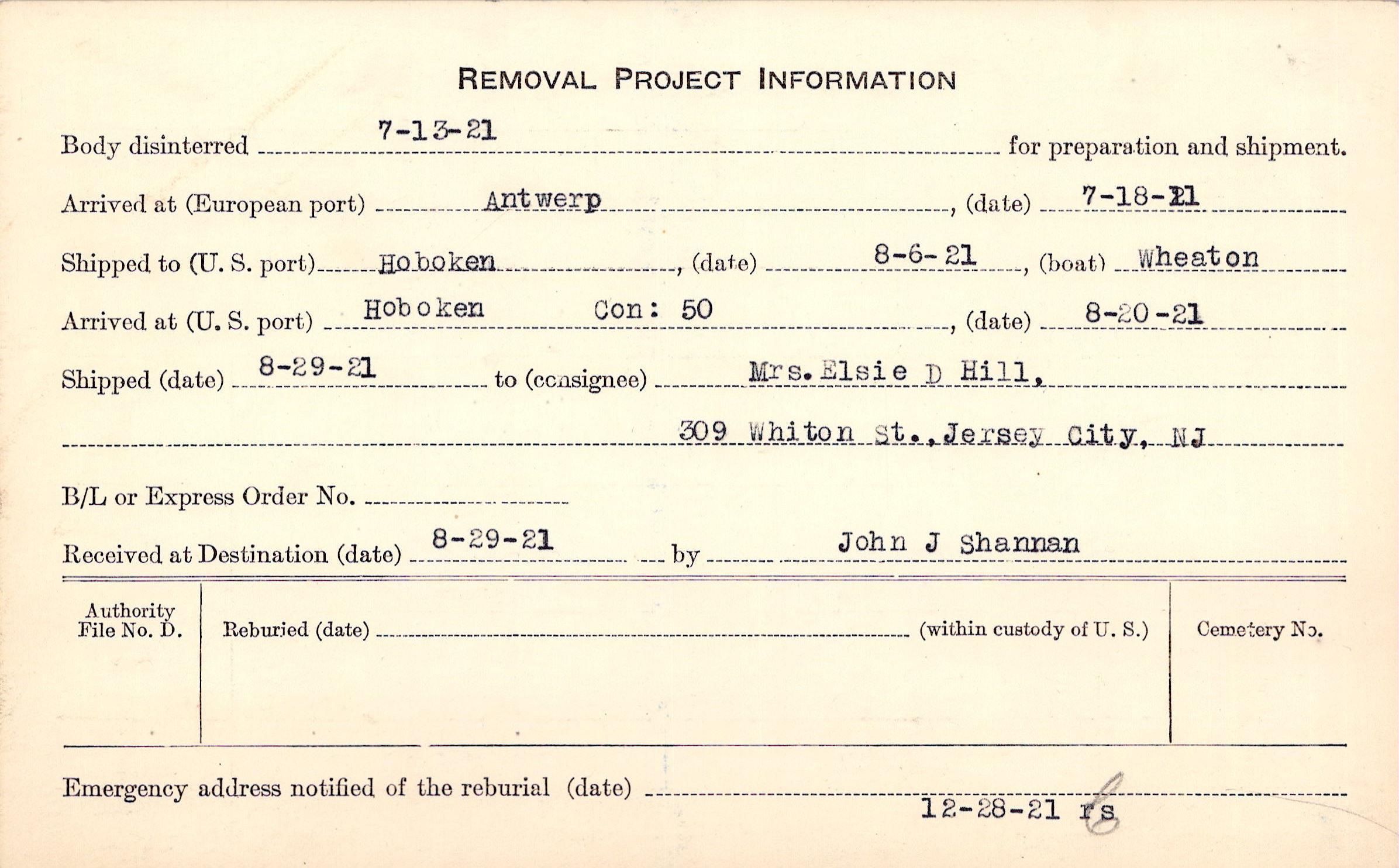 Mrs. Elsie D. Hill, Wife, 78 Union St., Jersey City, N.J.