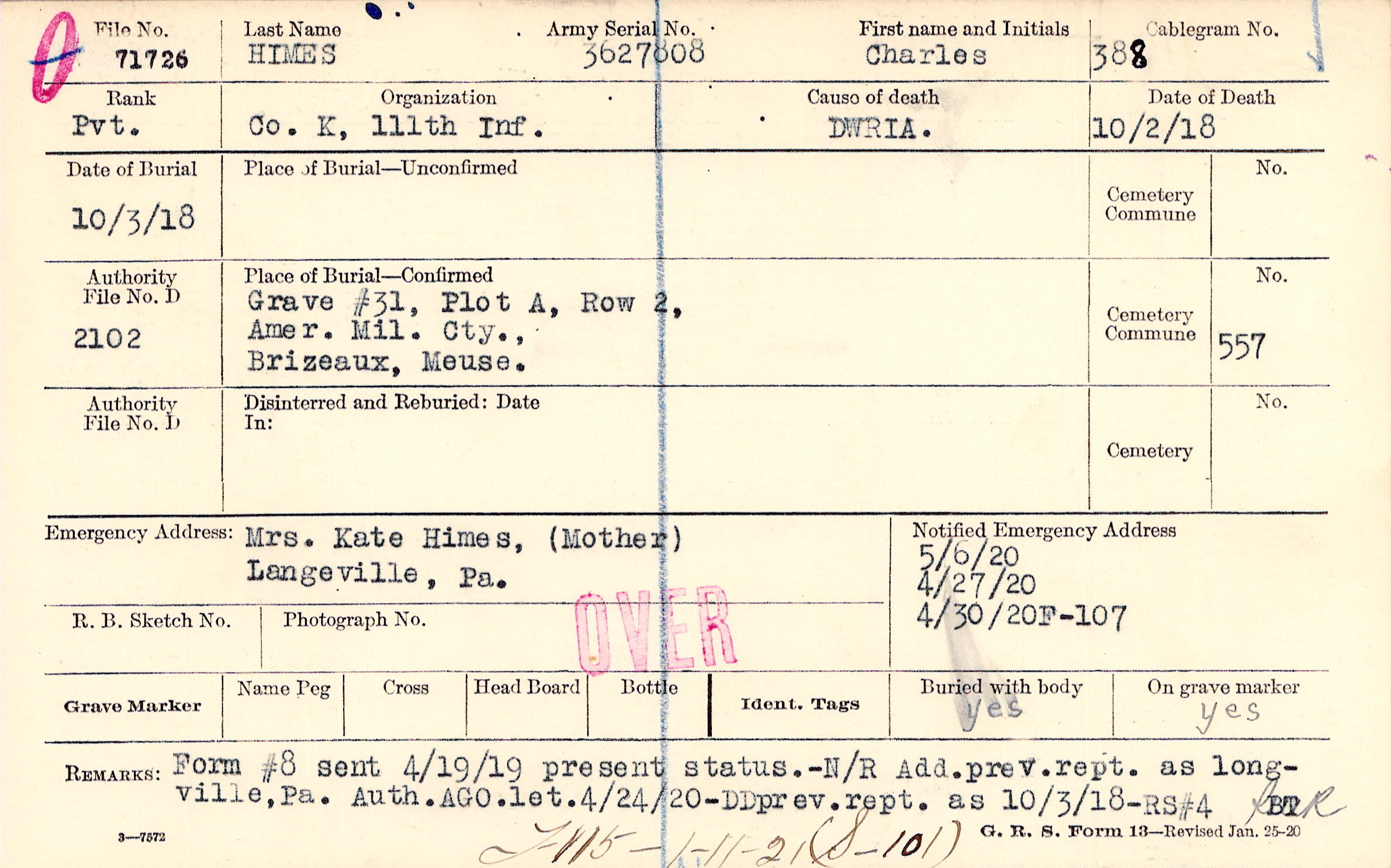 Grave #31, Plot A, Row 2, Amer. Mil. Cty., Brizeaux, Meuse.