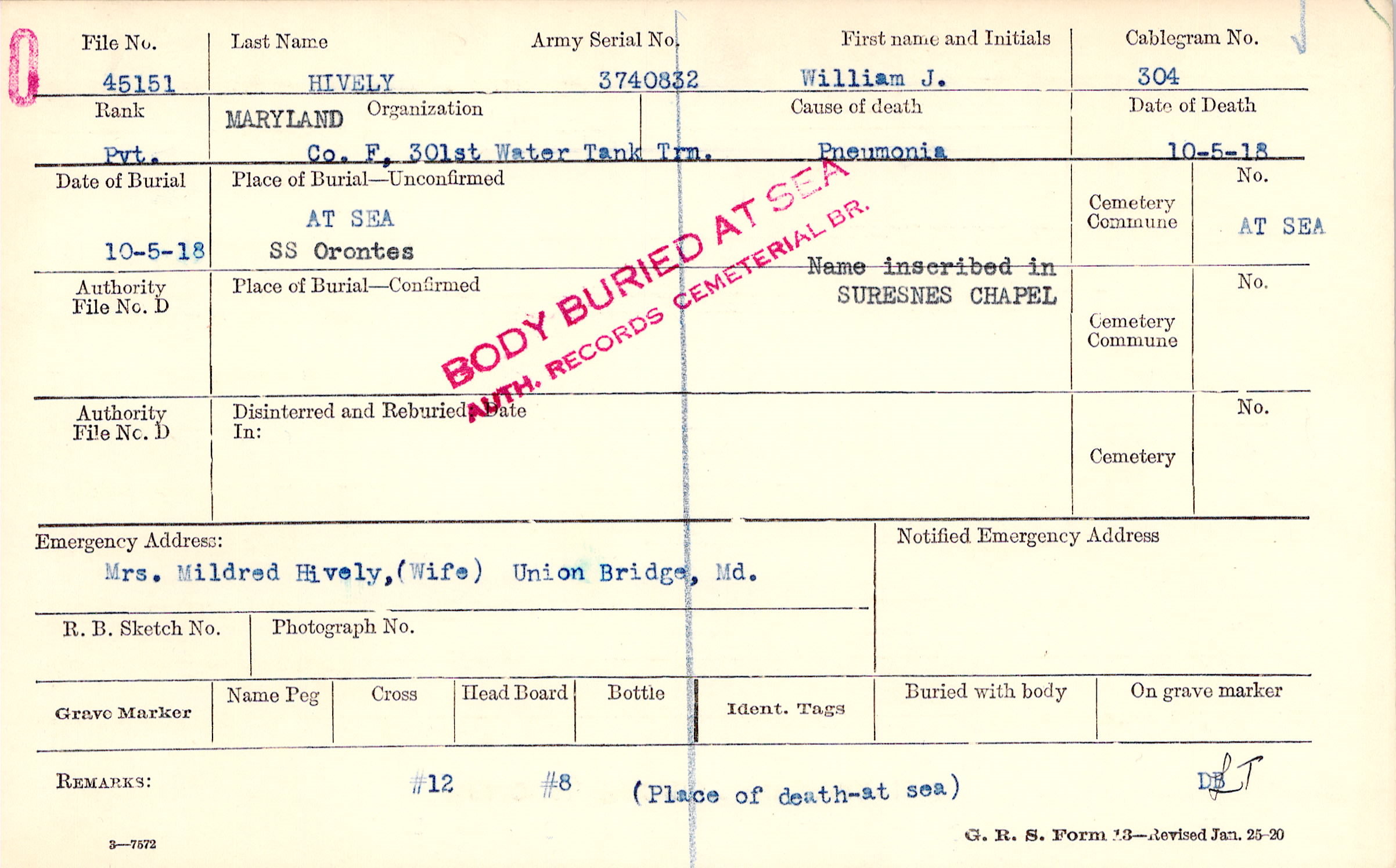 Mrs. Mildred Hively, (Wife), Union Bridge, Md.
