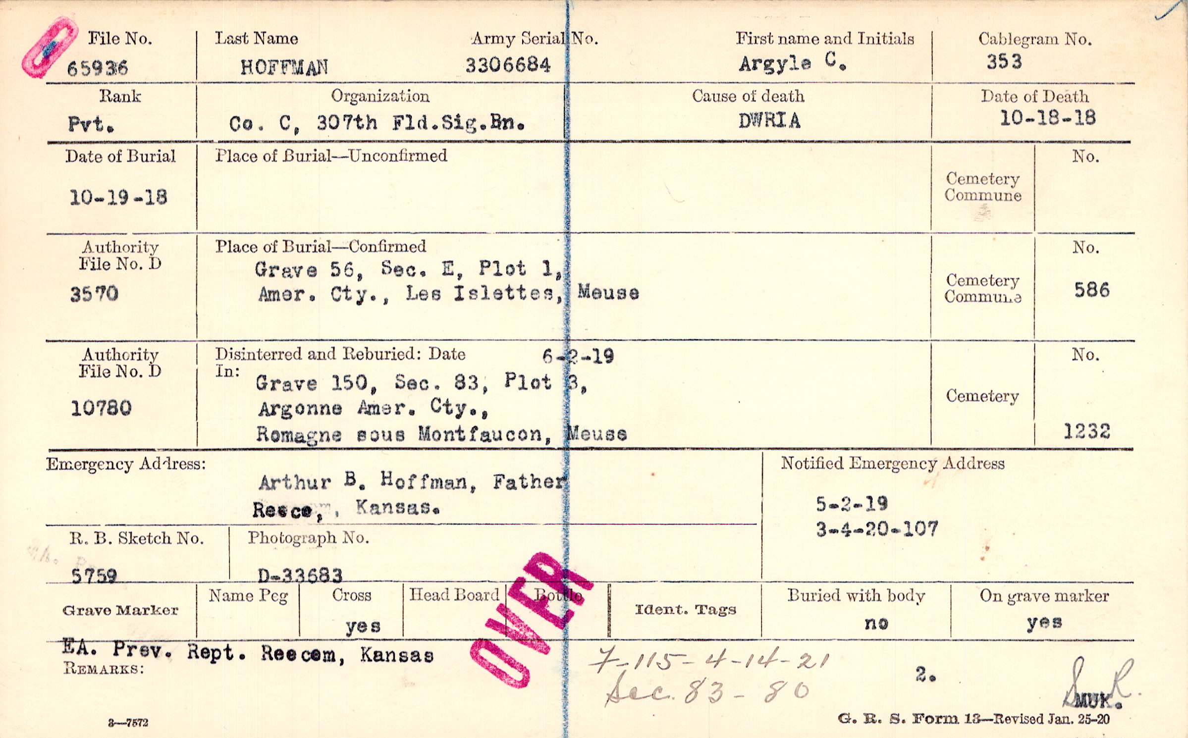 Grave 56, Sec. E, Plot 1, Amer. Cty., Les Islettes, Meuse