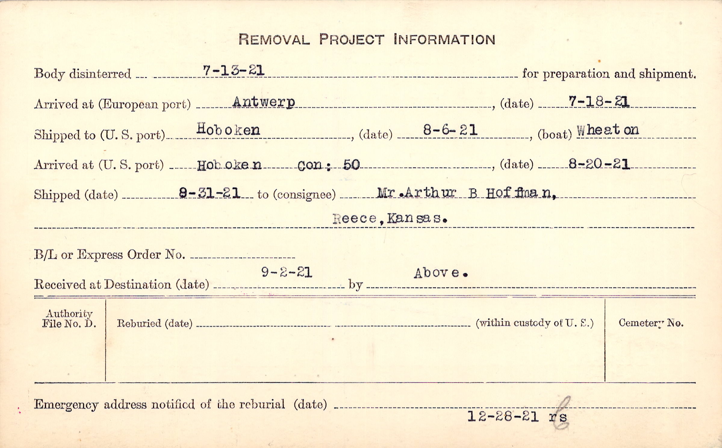 Arthur B. Hoffman, Father, Reece, Kansas.
