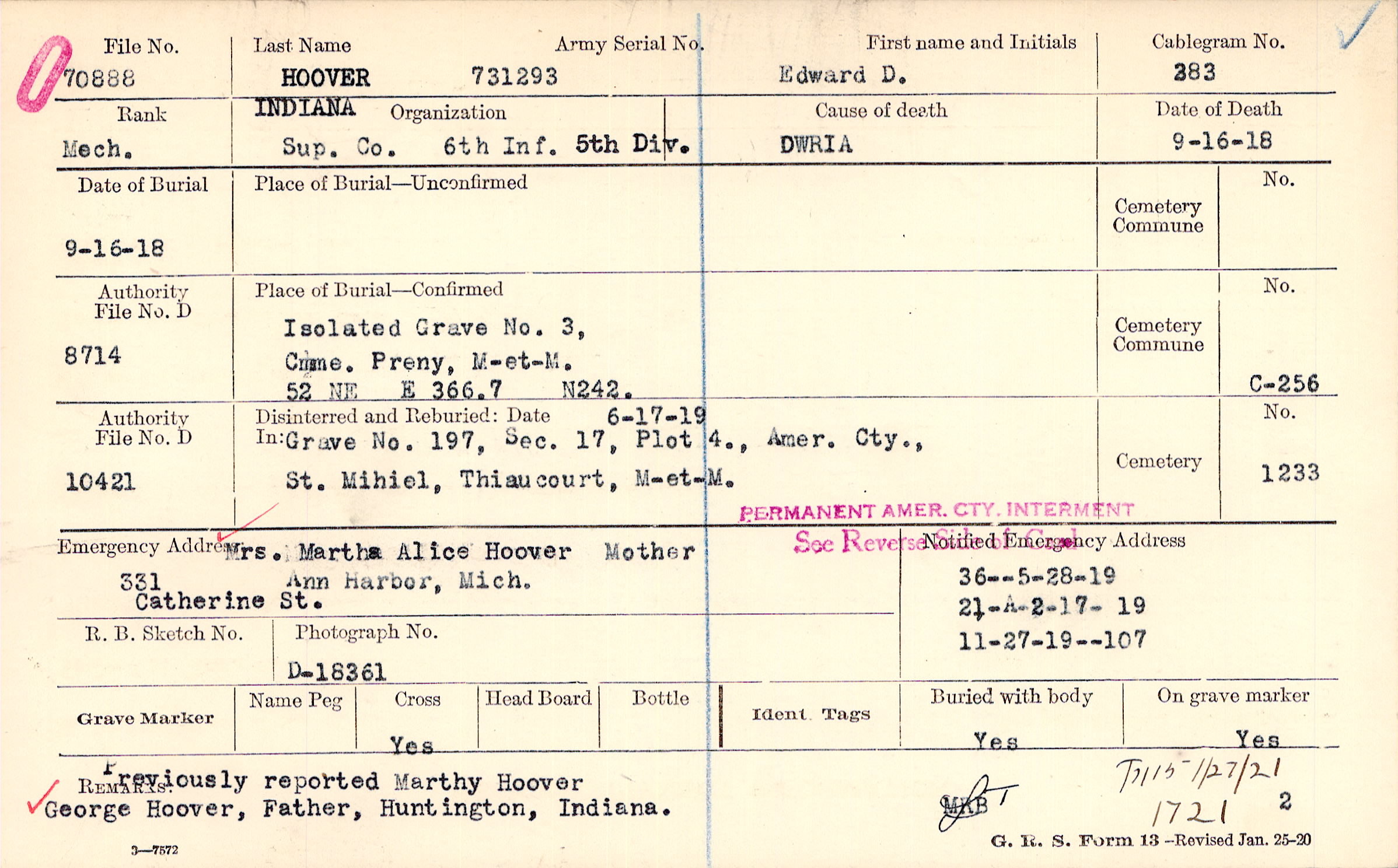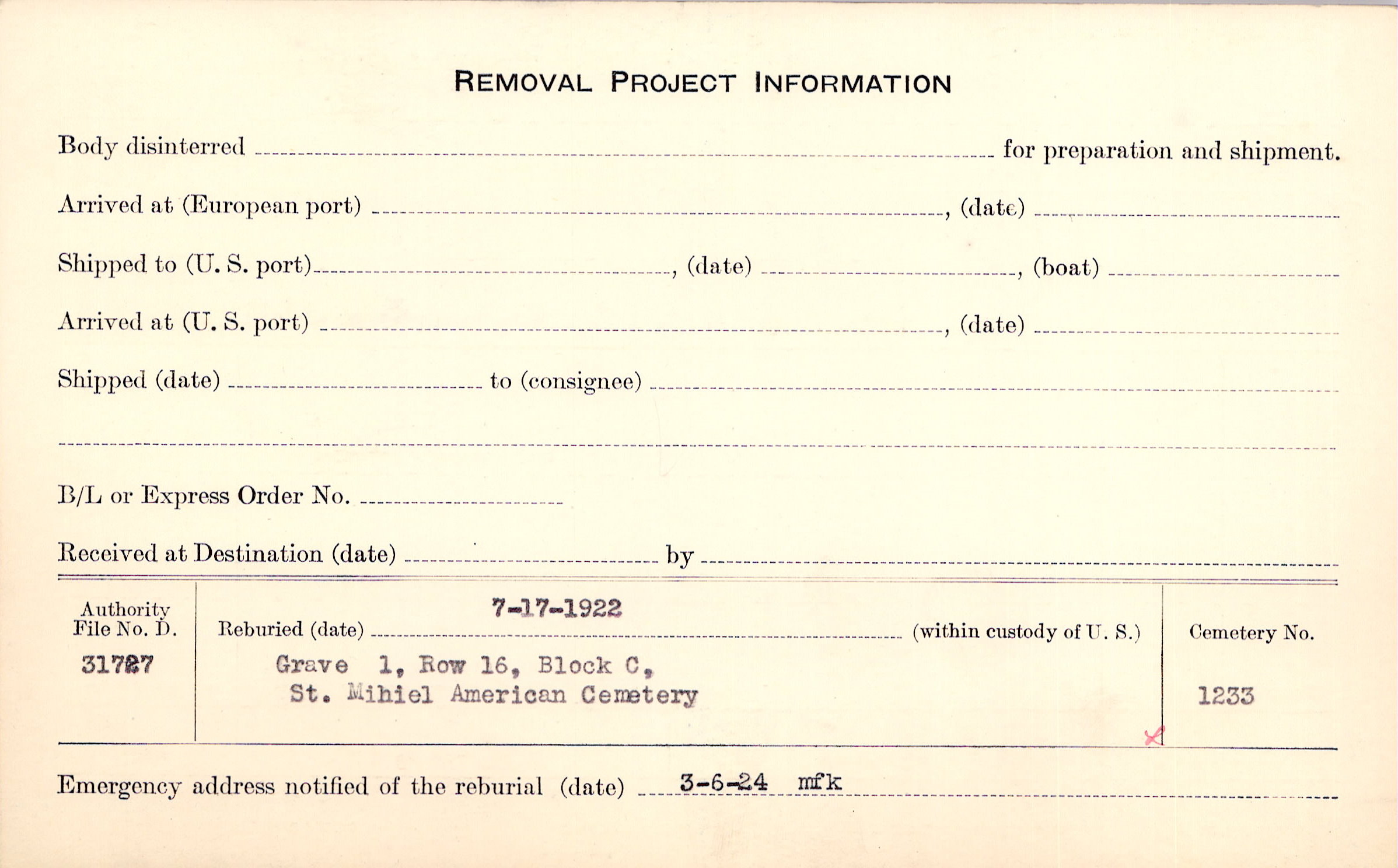 Grave 197, Section 17, Plot 4, St. Mihiel American Cemetery, Thiaucourt, Meurthe-et-Moselle