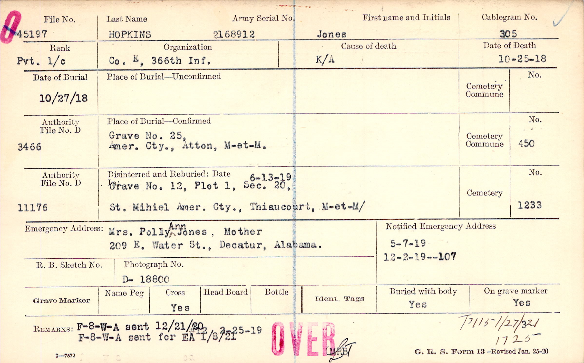 Mrs. Polly Ann Jones, Mother, 209 E. Water St., Decatur, Alabama.