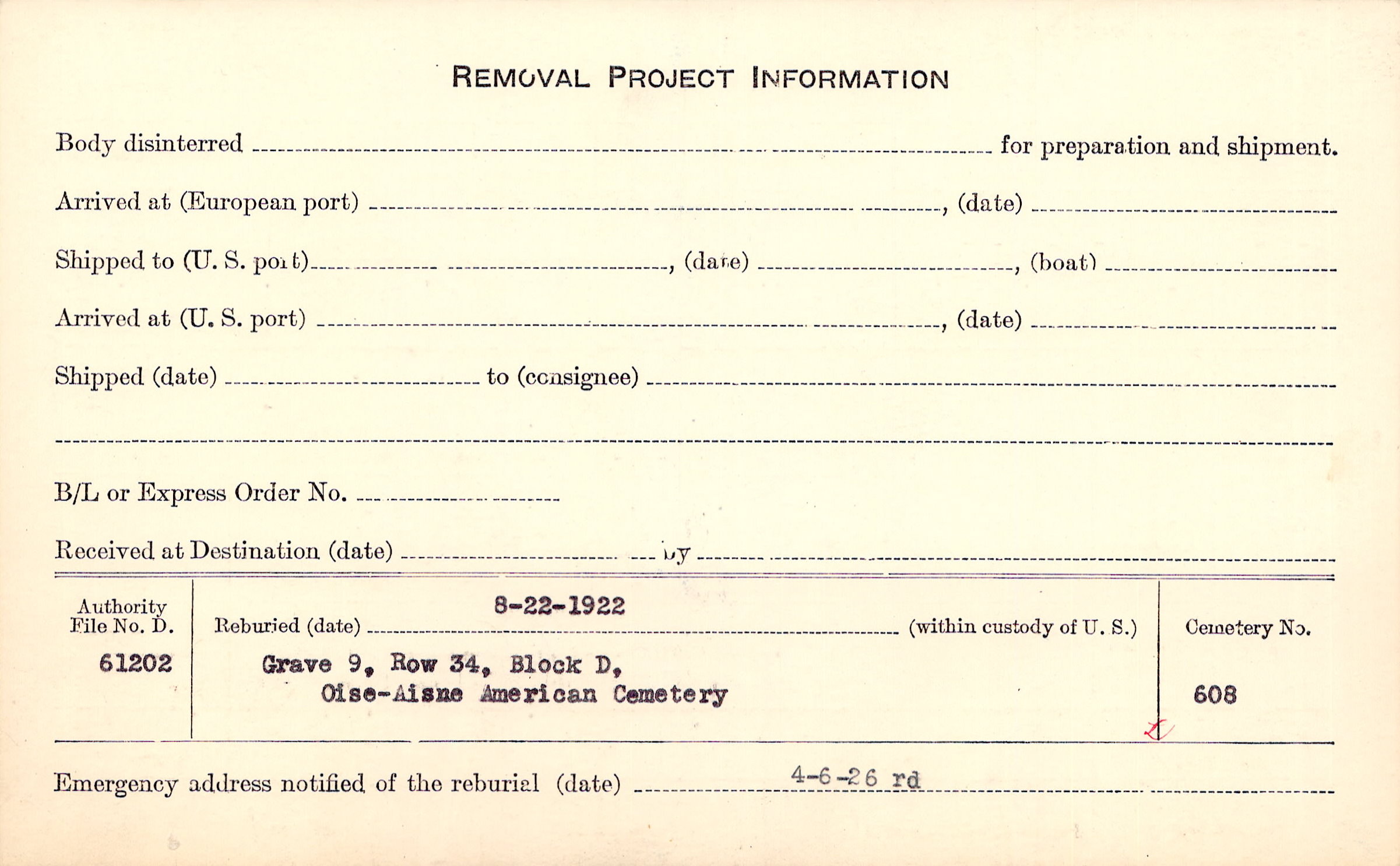 Grave #7, 33SE., American B/A Cemetery, Chery Chartreuve, Aisne.