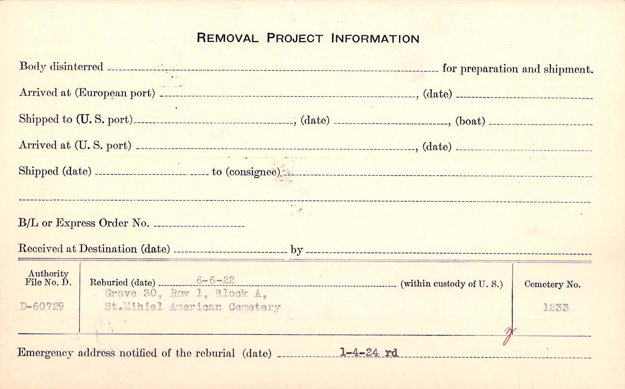 | Permanent Burial in Foreign Cemetery |