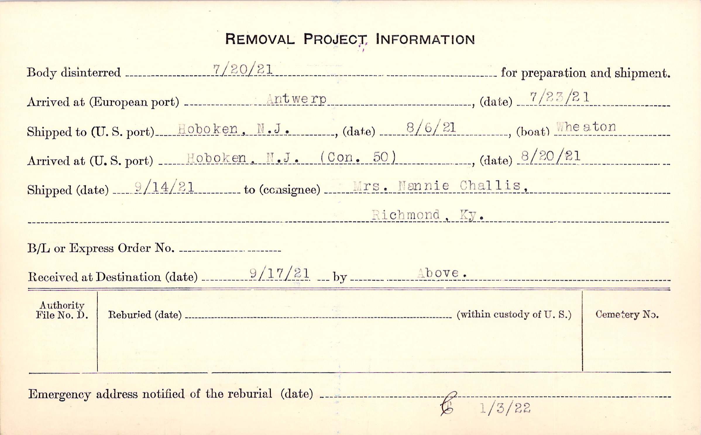Mrs. Nannie Challis, (Mother), 507 Orange St., Richmond, Ky.