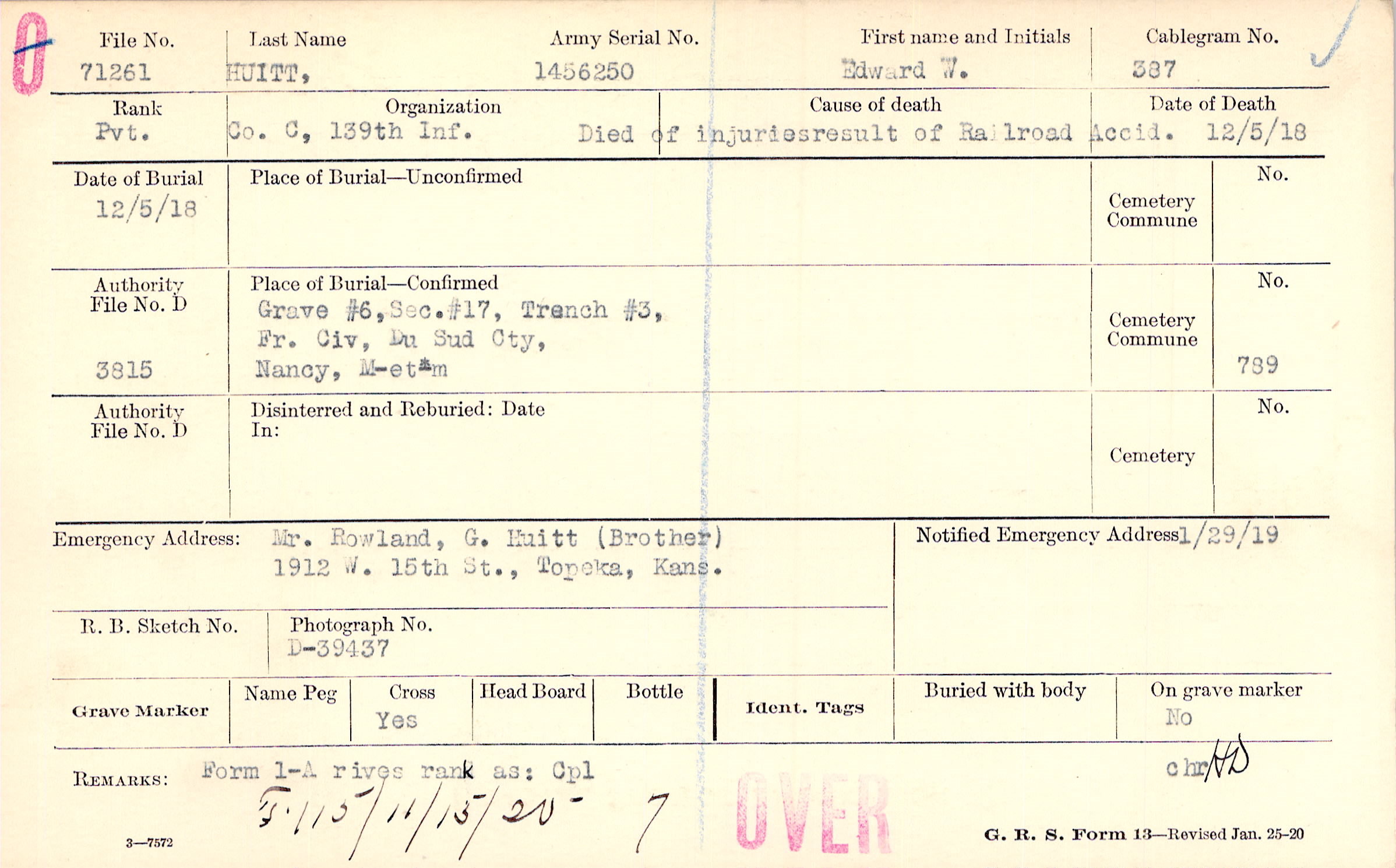 Grave #6, Sec. #17, Trench #3, Fr. Civ., Du Sud Cty., Nancy, M-et-m