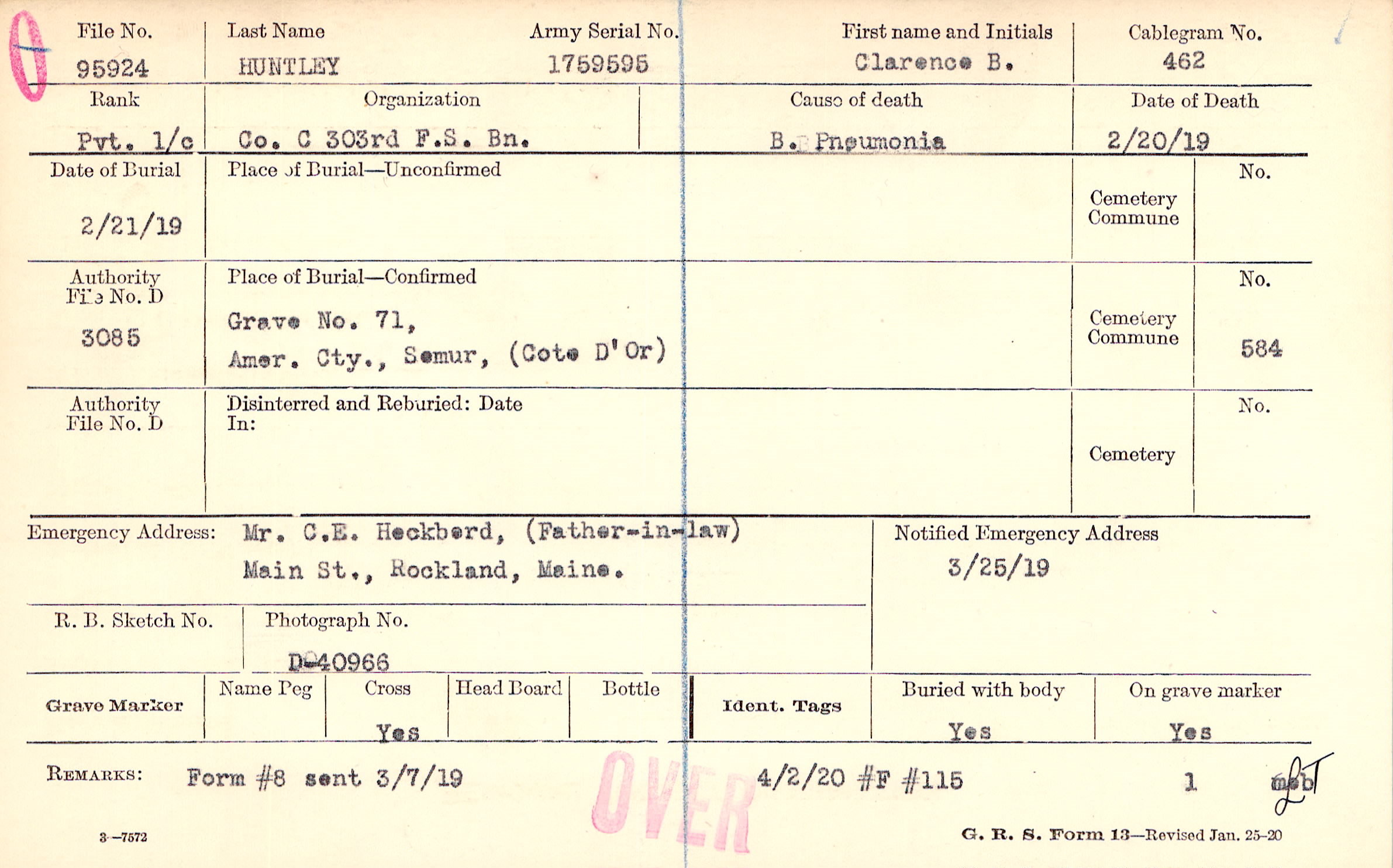 Mr. C.E. Heckberd, (Father-in-law), Main St., Rockland, Maine.