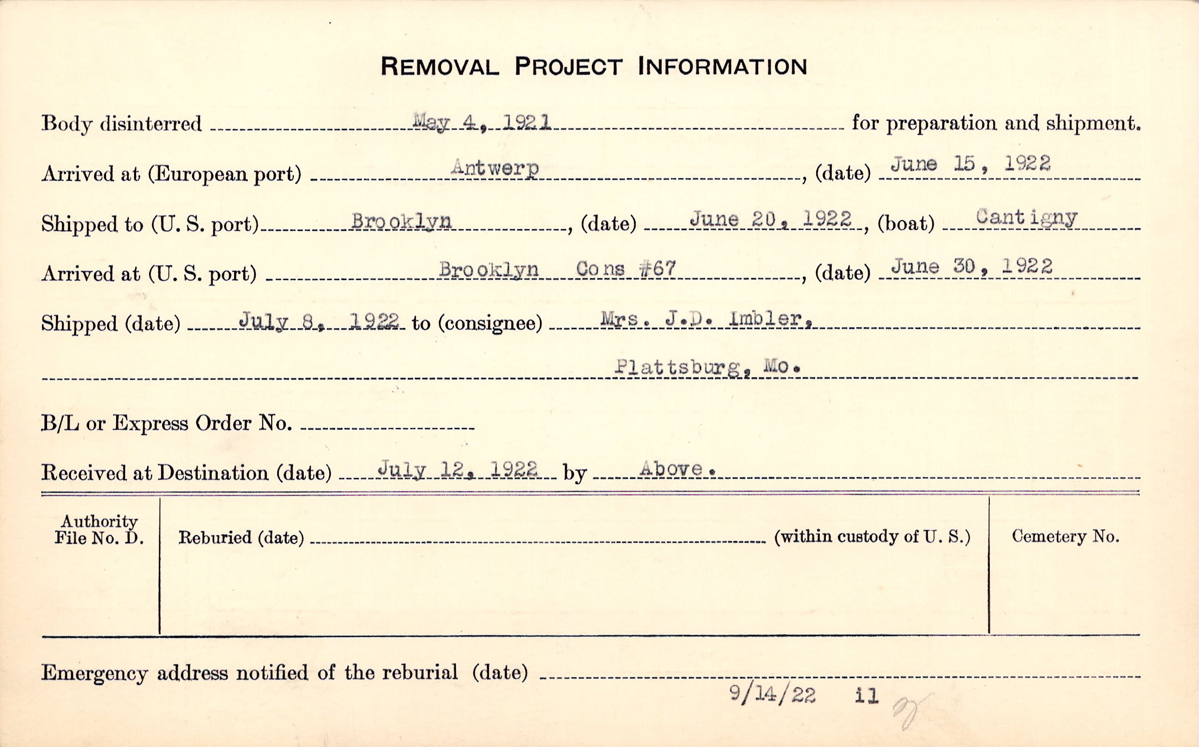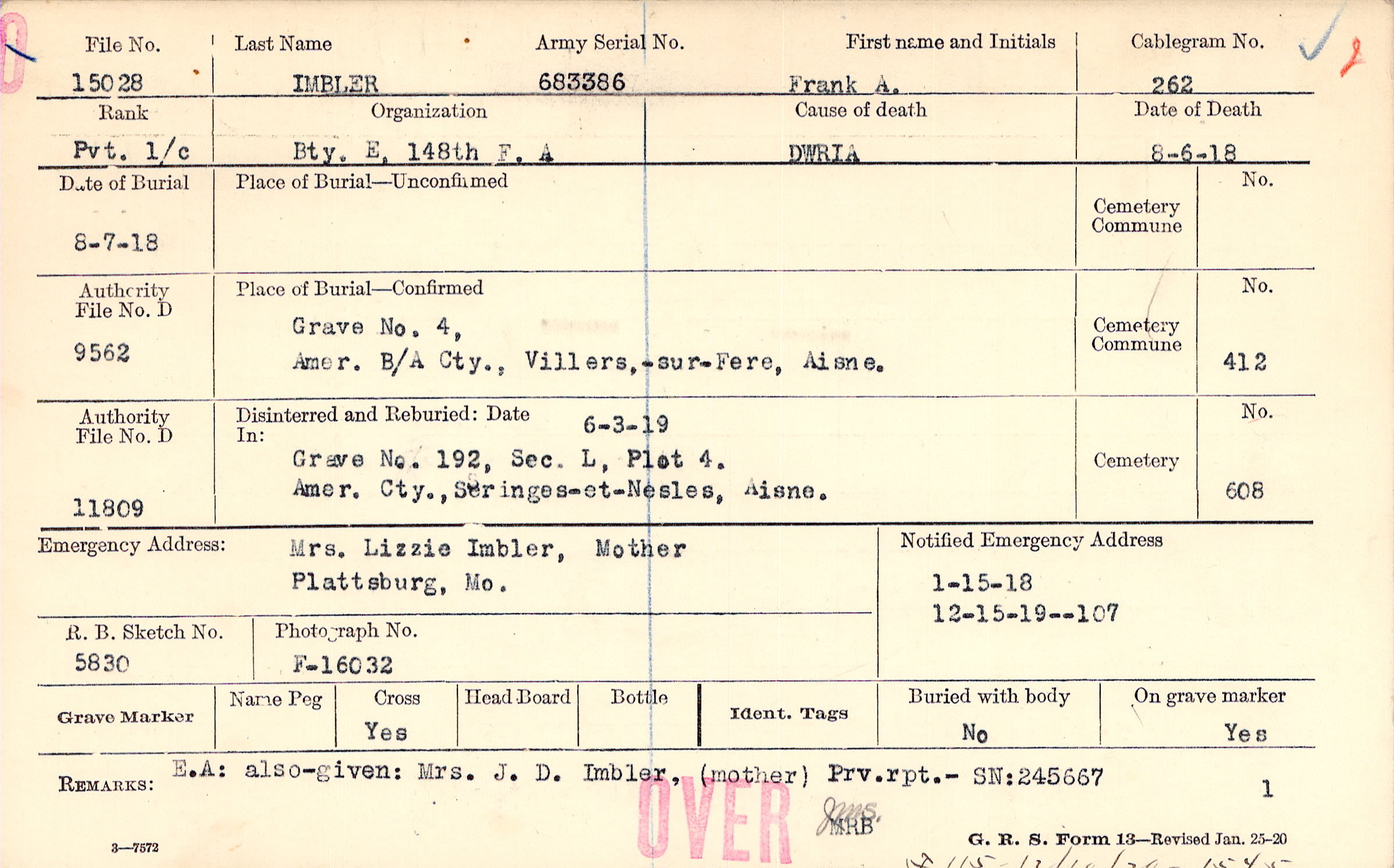 E.A.; also given: Mrs. J. D. Imbler, (mother) Prv. rpt. - SN:245667