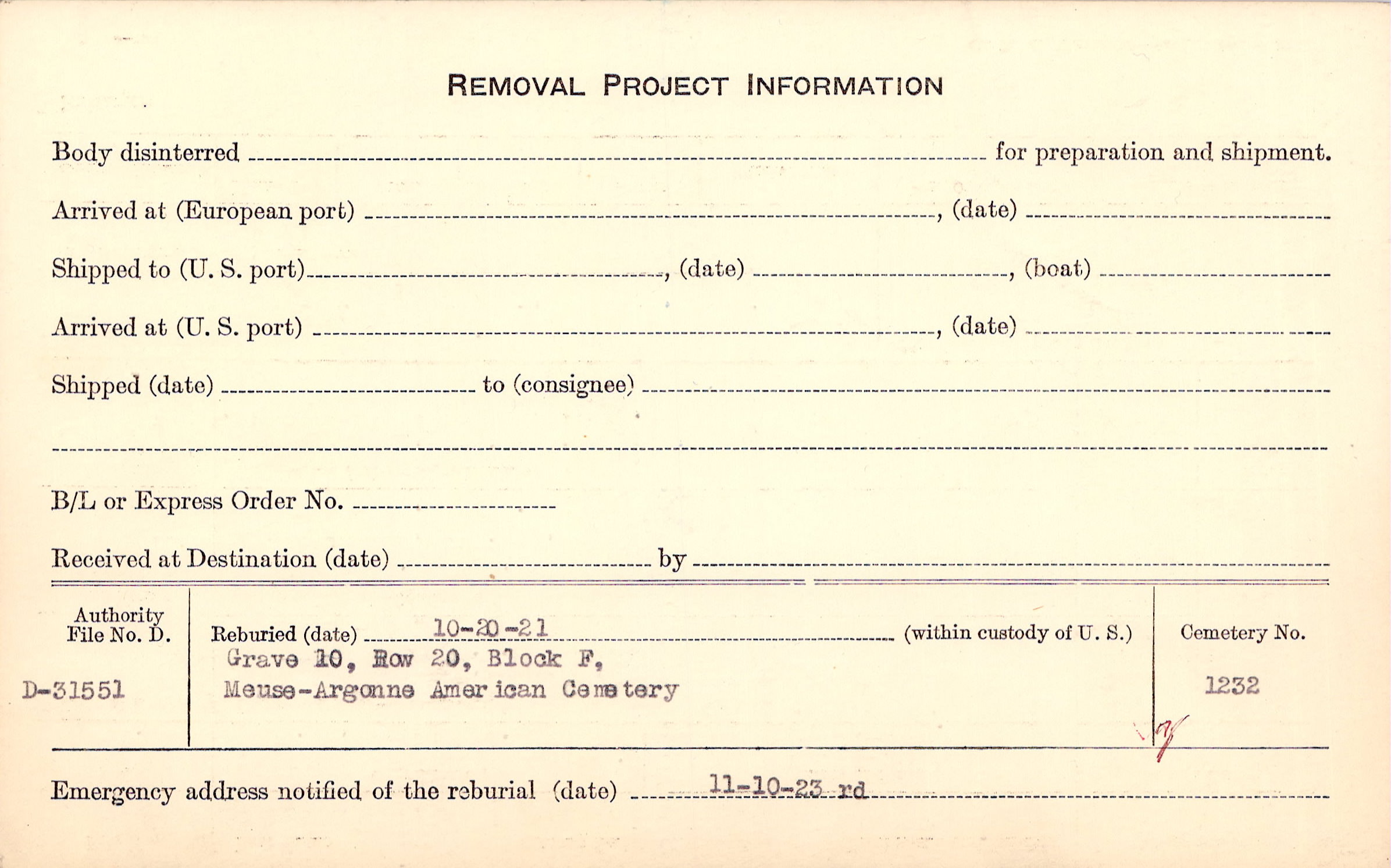 | Permanent Burial in Foreign Cemetery |