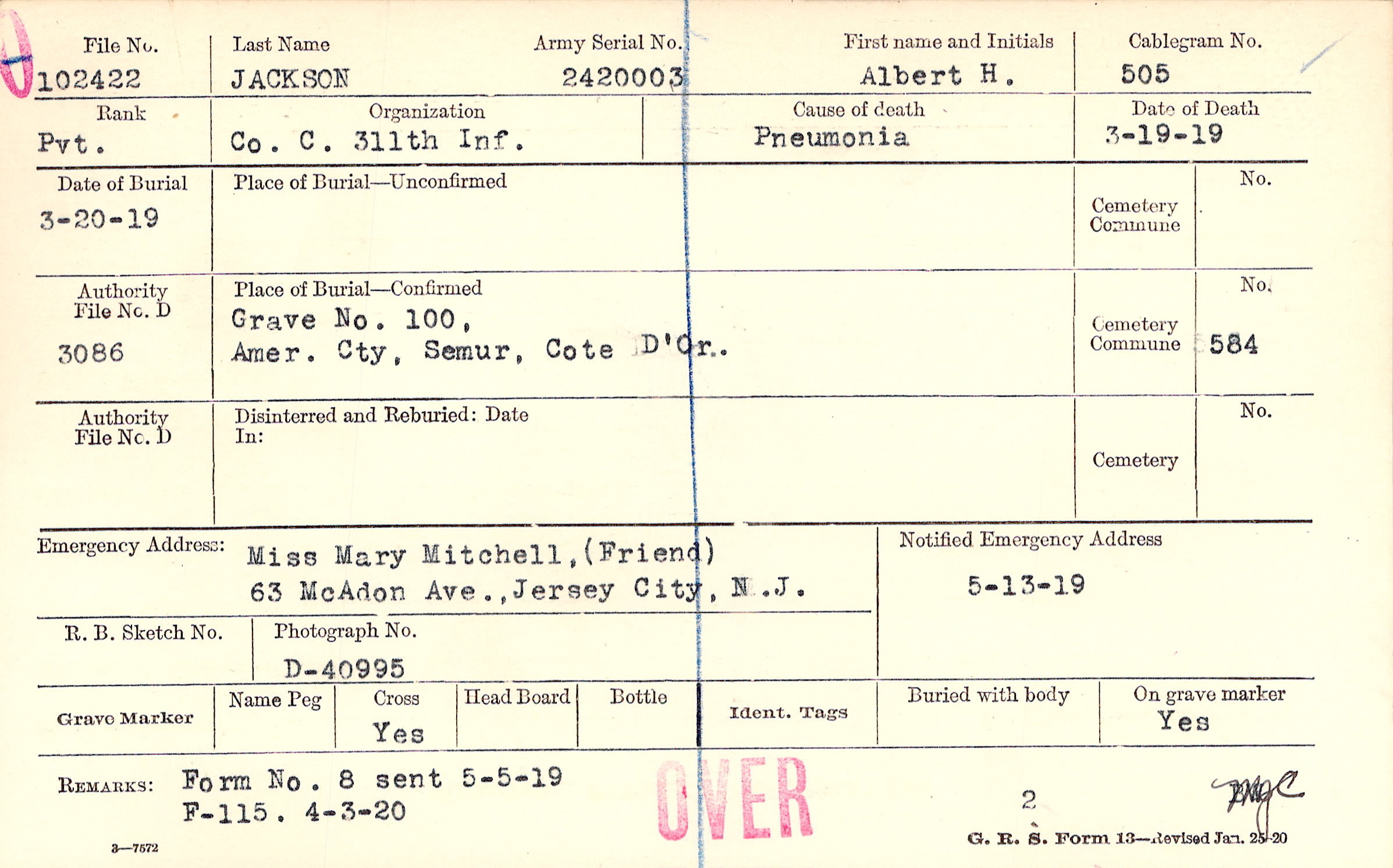 Grave 100, Amer. Cty., Semur, Cote D’Or.