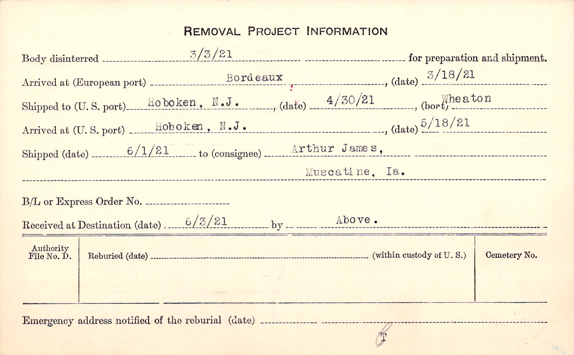 Mrs. Mary James, Mother, 320 Stewart Road, Muscatine, Iowa