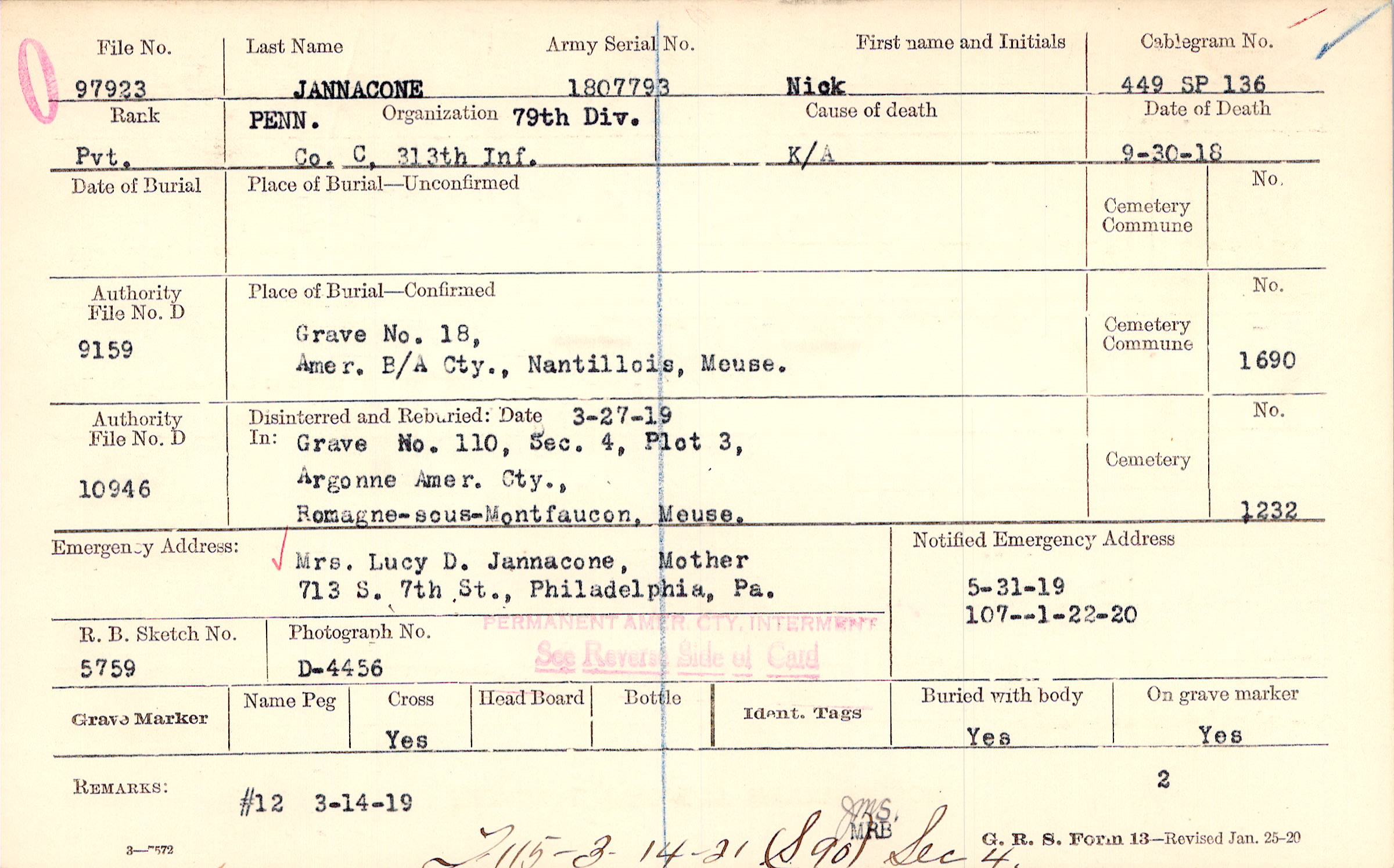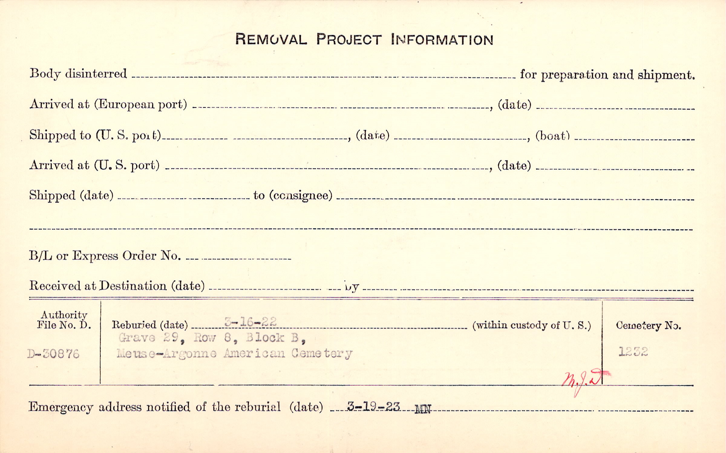 Grave 18, Amer. B/A Cty., Nantillois, Meuse