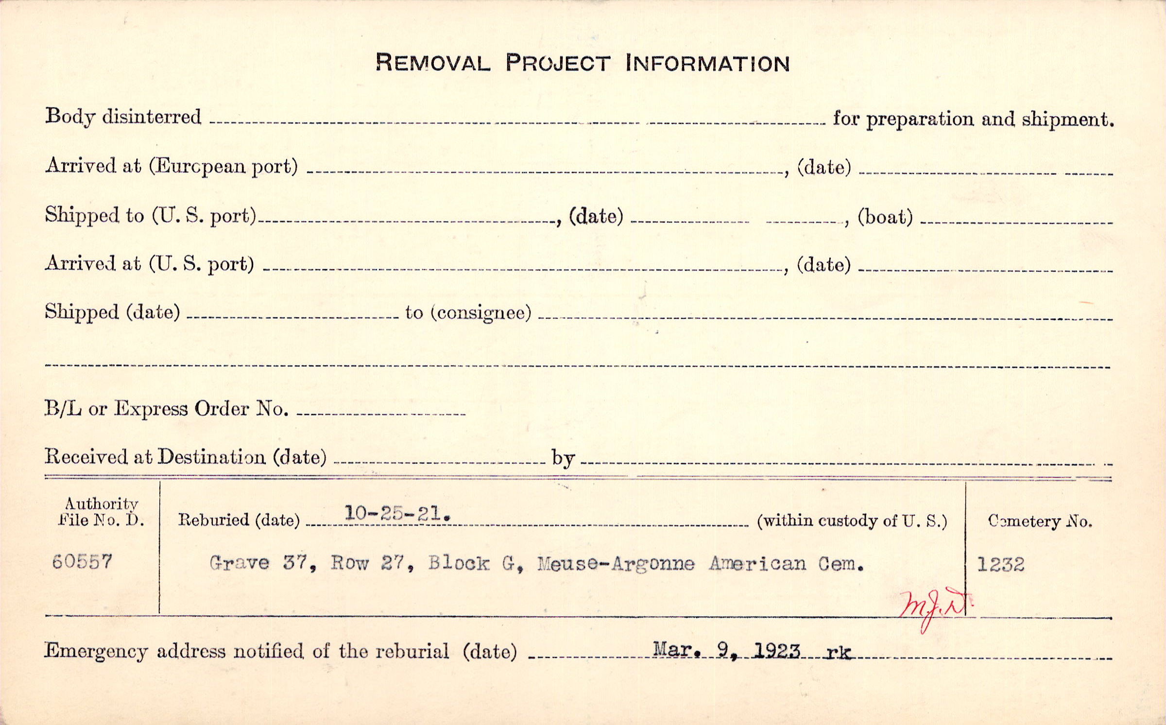 Grave 16 Plot D, Row 1,Amer. Mil, Cty., Brizeaux, (Meuse)