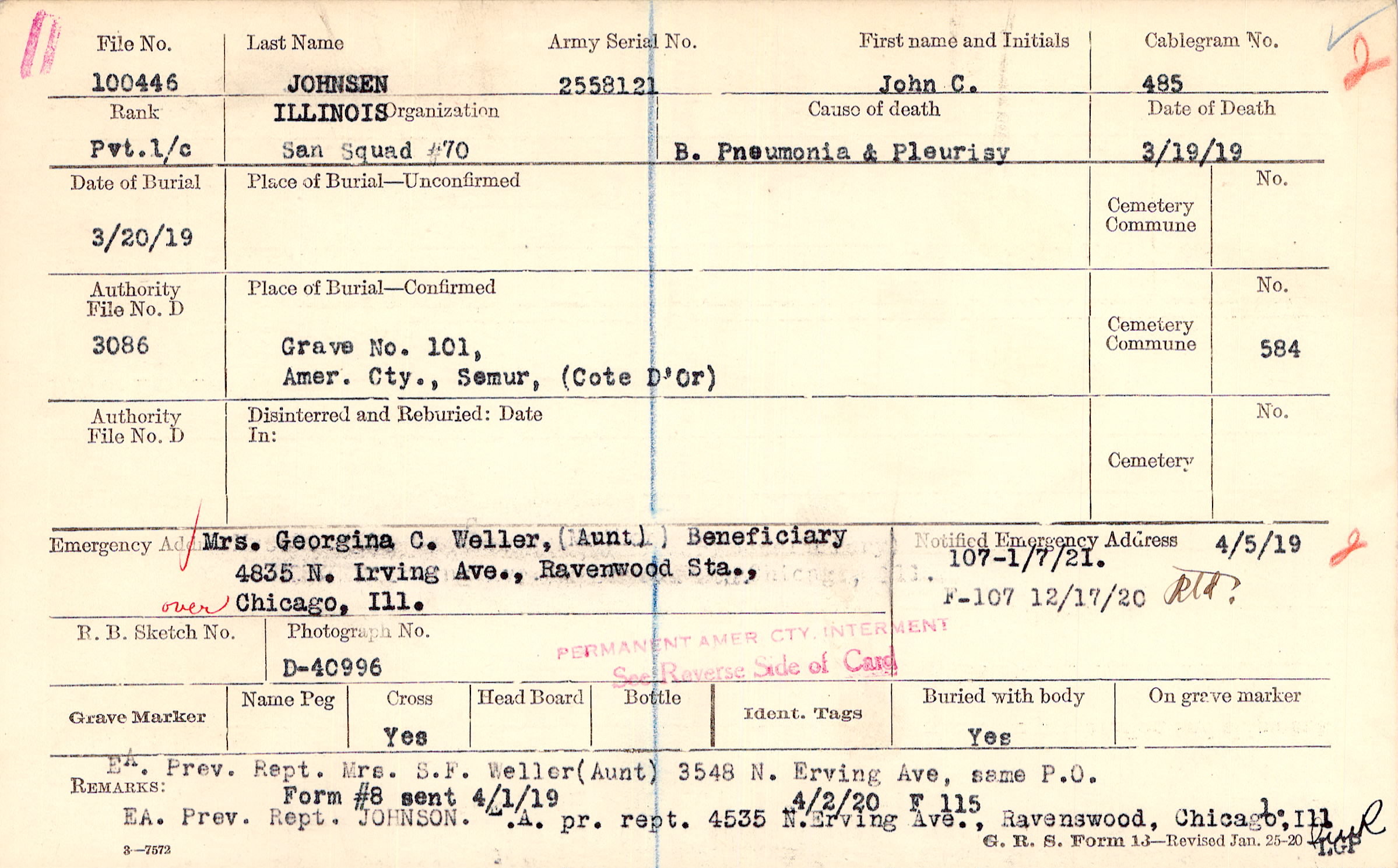 4/5/1919, Form 107: 1/7/19 Form 21: , Form 107: 12/17/1920 Rtd?