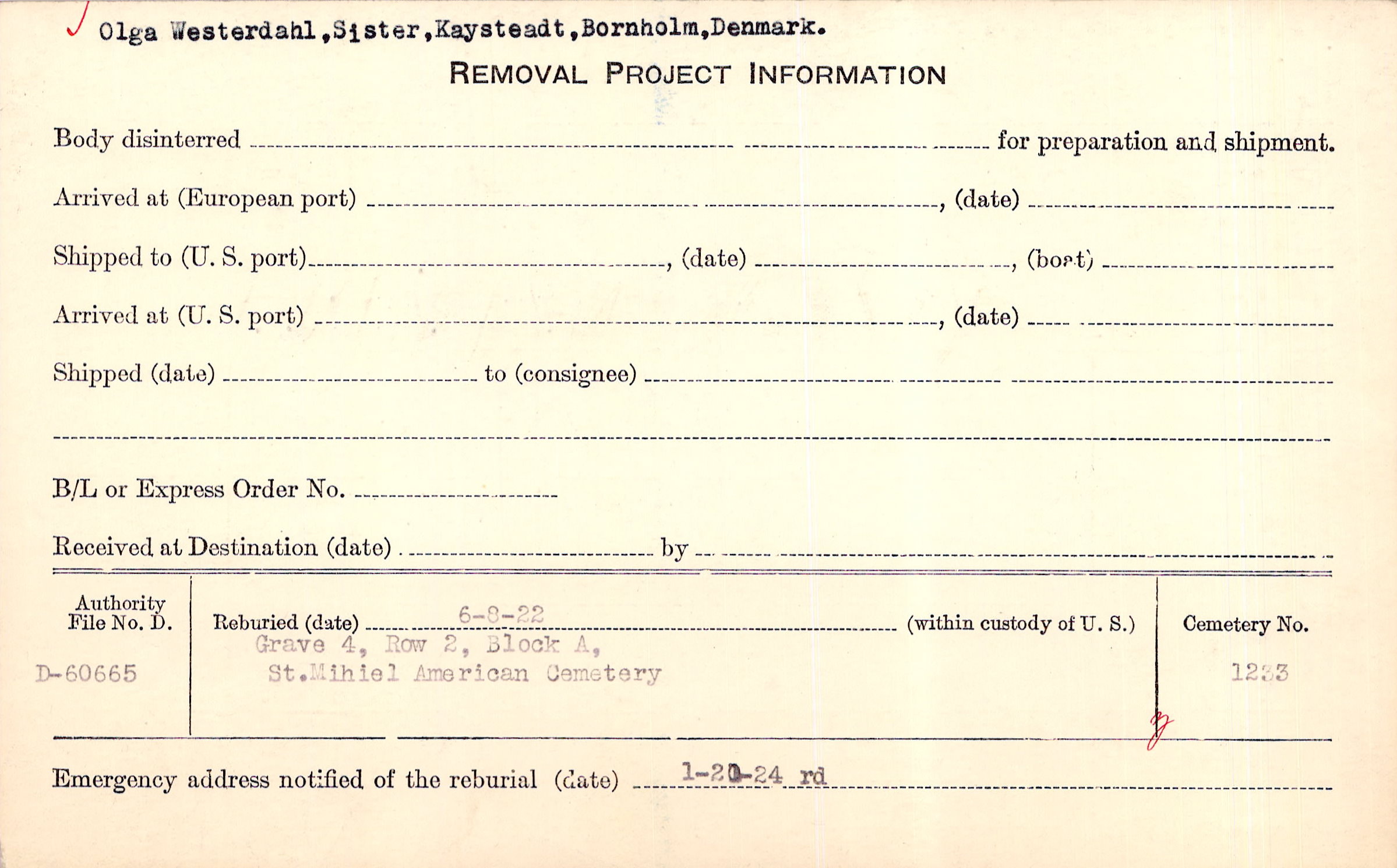 | Permanent Burial in Foreign Cemetery |