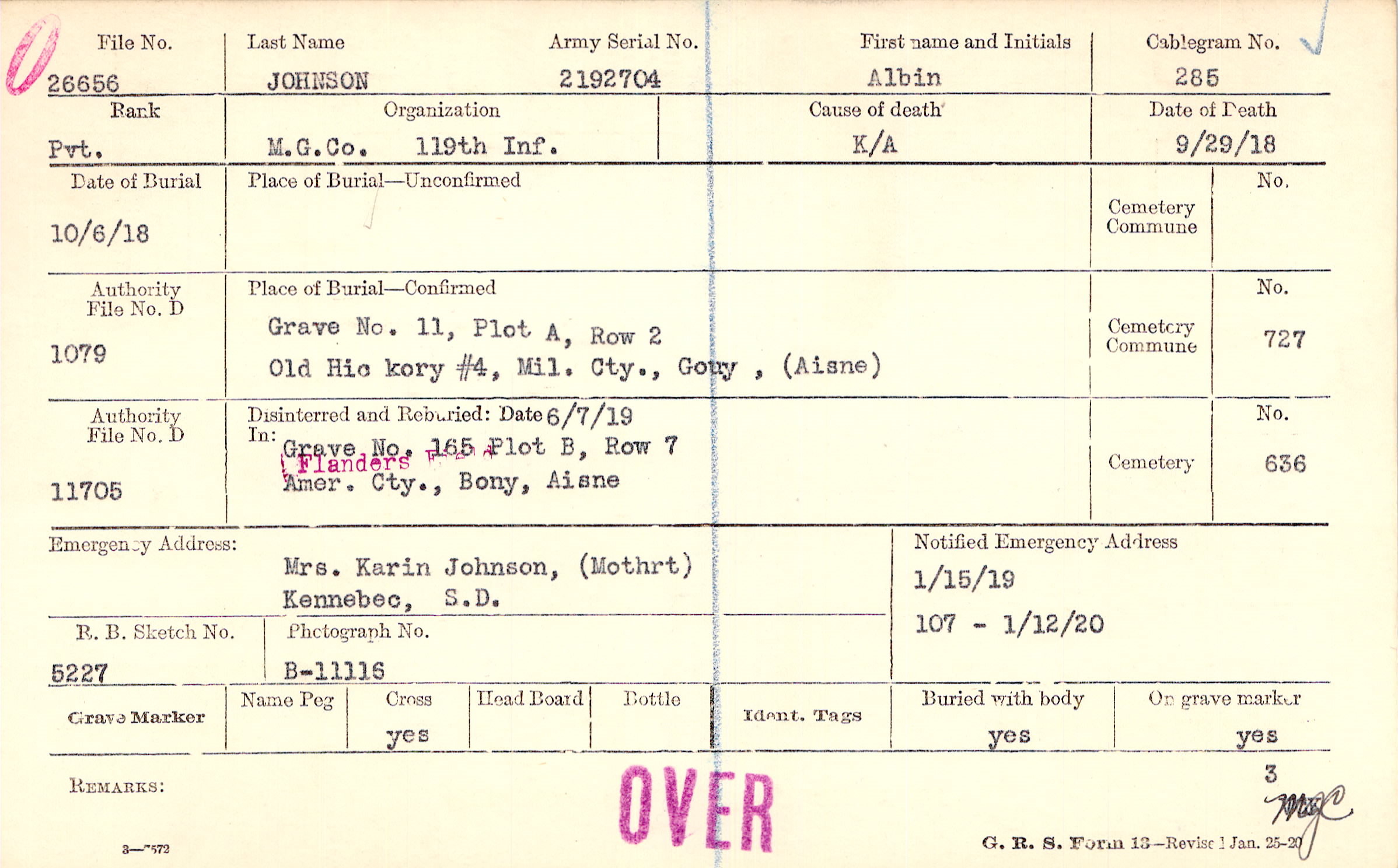 Grave 11, Plot A, Row 2, Old Hic kory #4, Mil. Cty., Gouy, Aisne