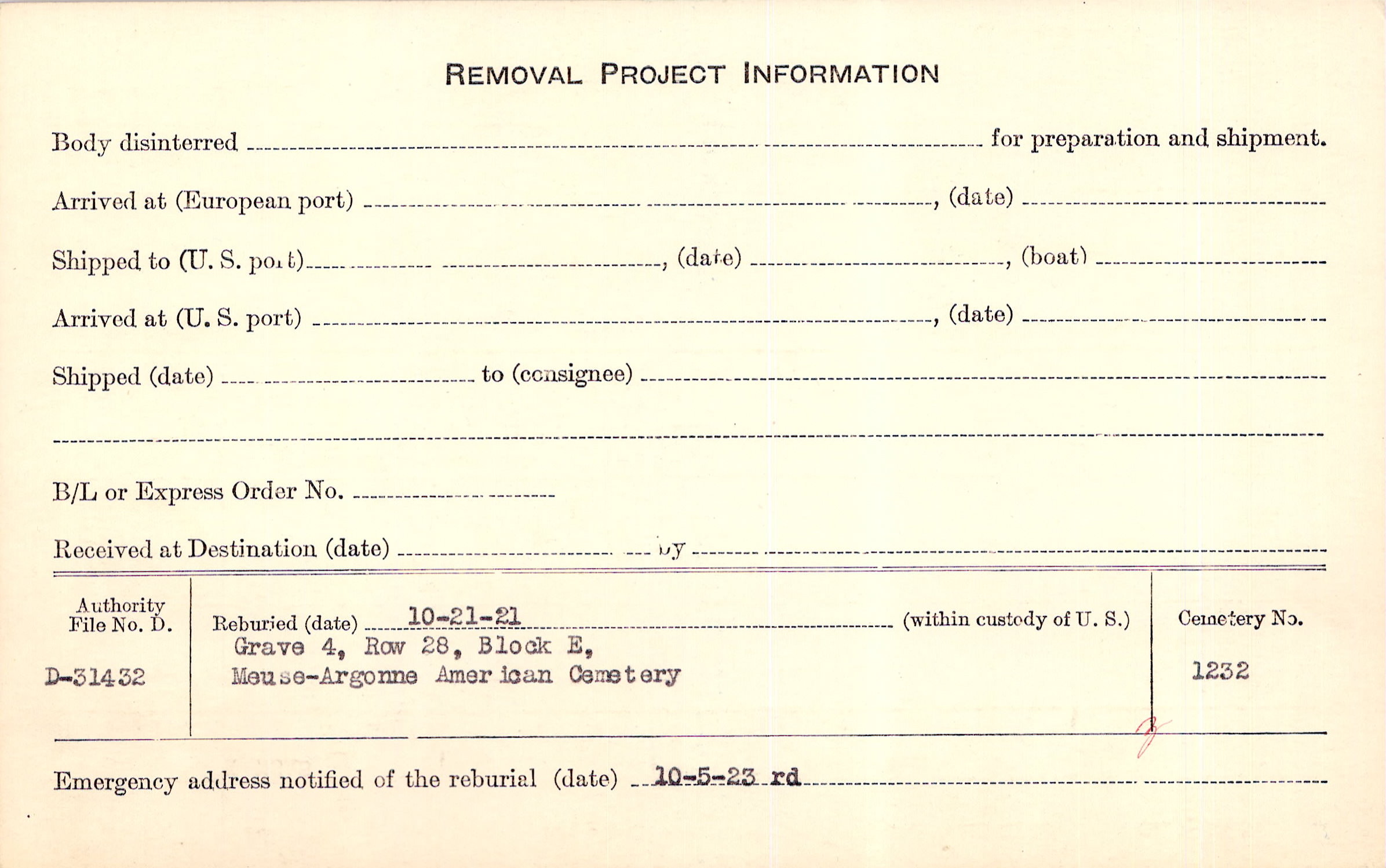 | Permanent Burial in Foreign Cemetery |