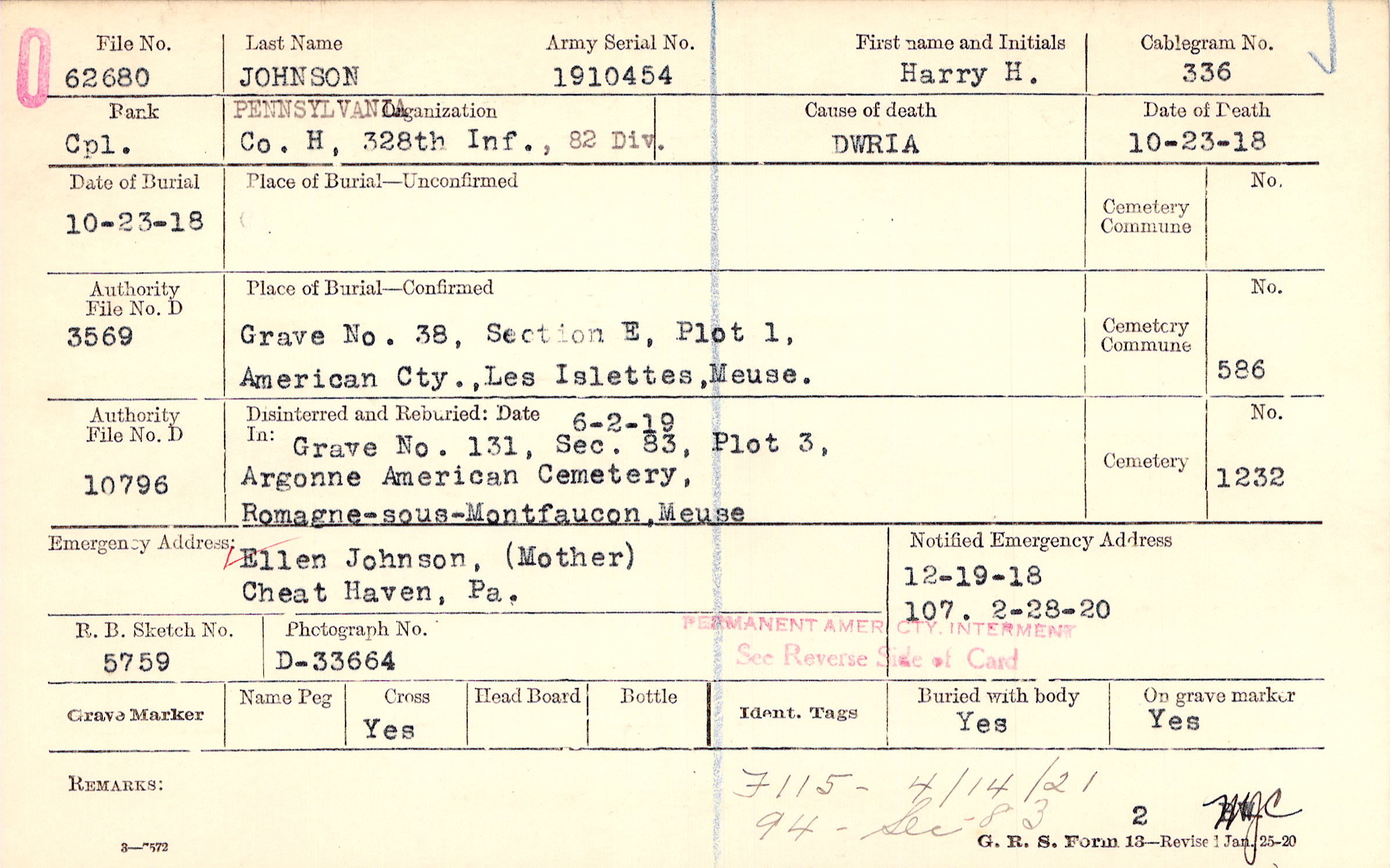 Grave 38, Section E, Plot 1, American Cty., Les Islettes, Meuse