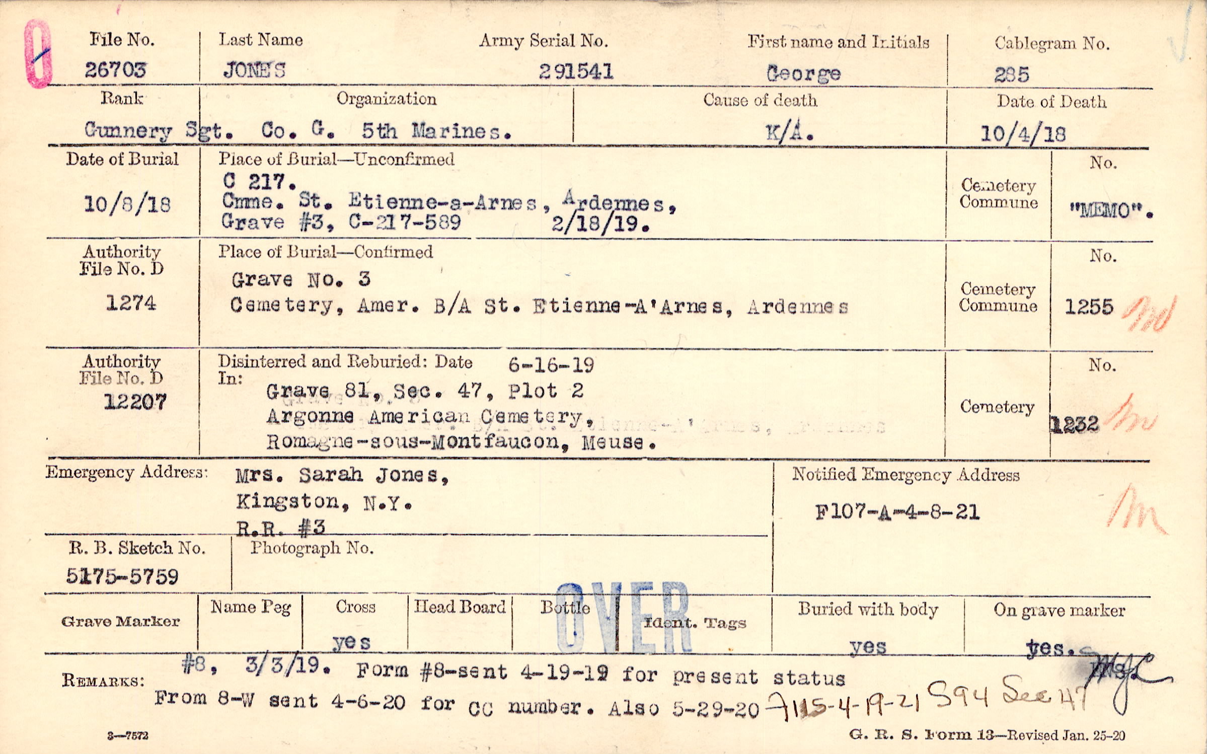 C 217, Cmme. St. Etienne-a-Arnes, Ardennes, Grave #3, C-217-589 , 2/18/19.