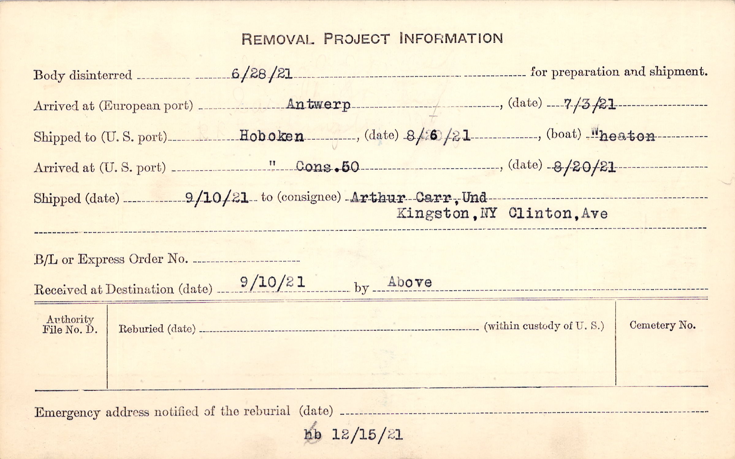 to Arthur Carr, Und., Kingston, NY, Clinton, Ave.
