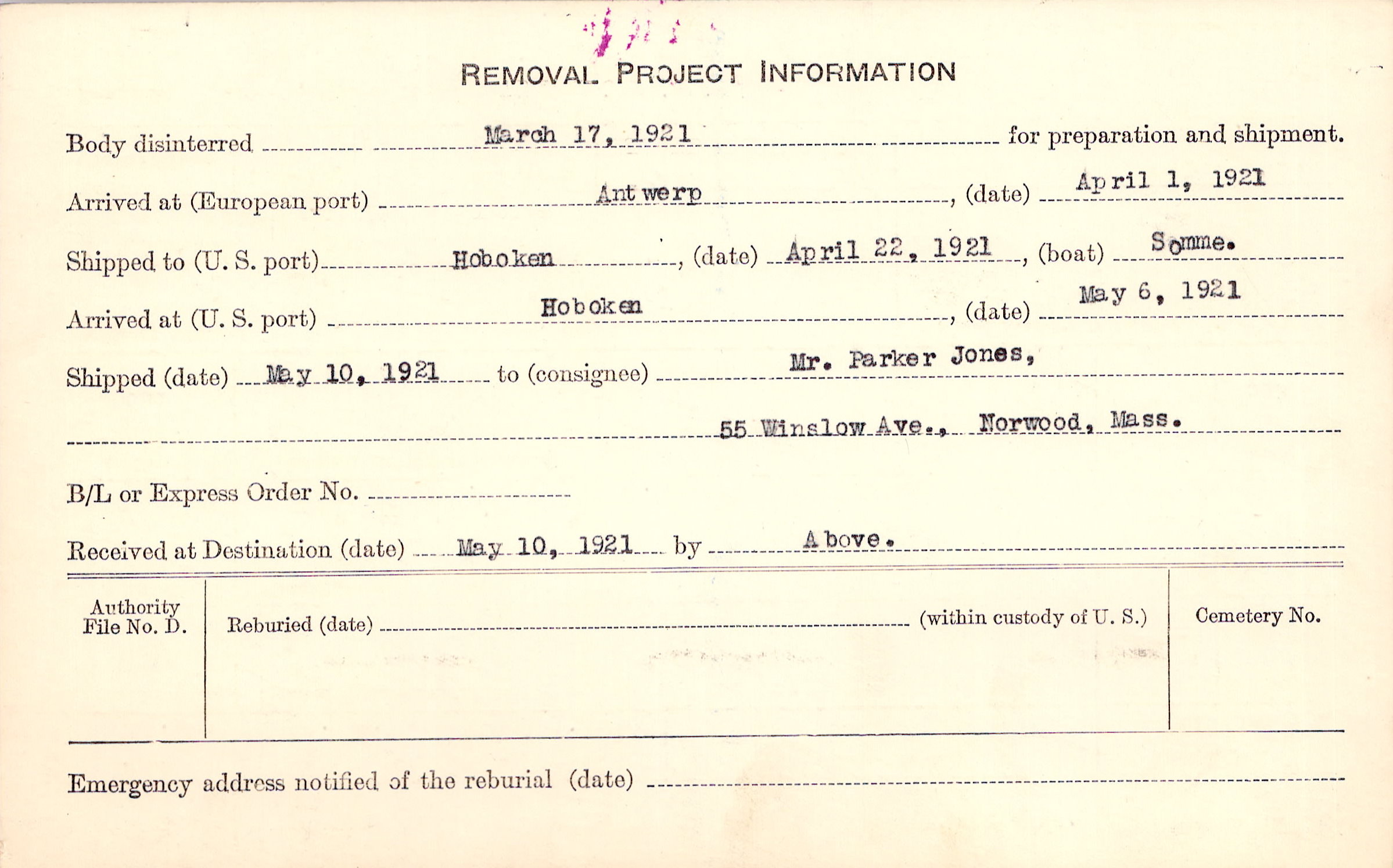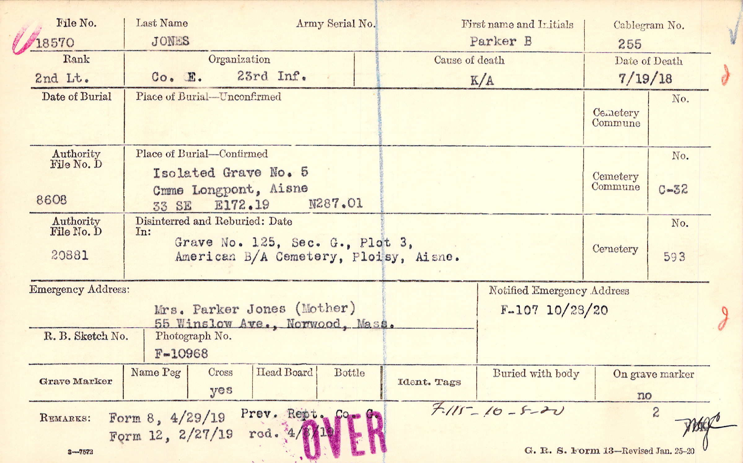 Mrs. Parker Jones (Mother), 55 Winslow Ave., Norwood, Mass.