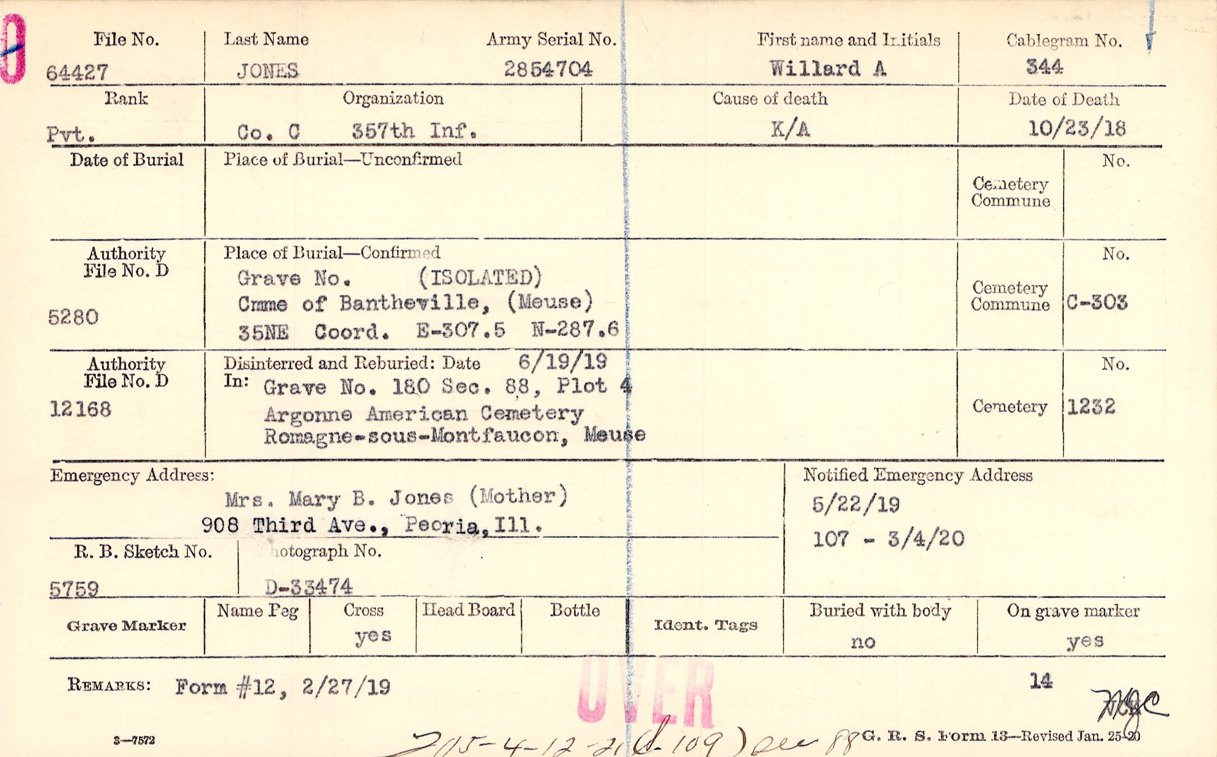 Mrs. Mary B. Jones (Mother), 908 Third Ave., Peoria, Ill.