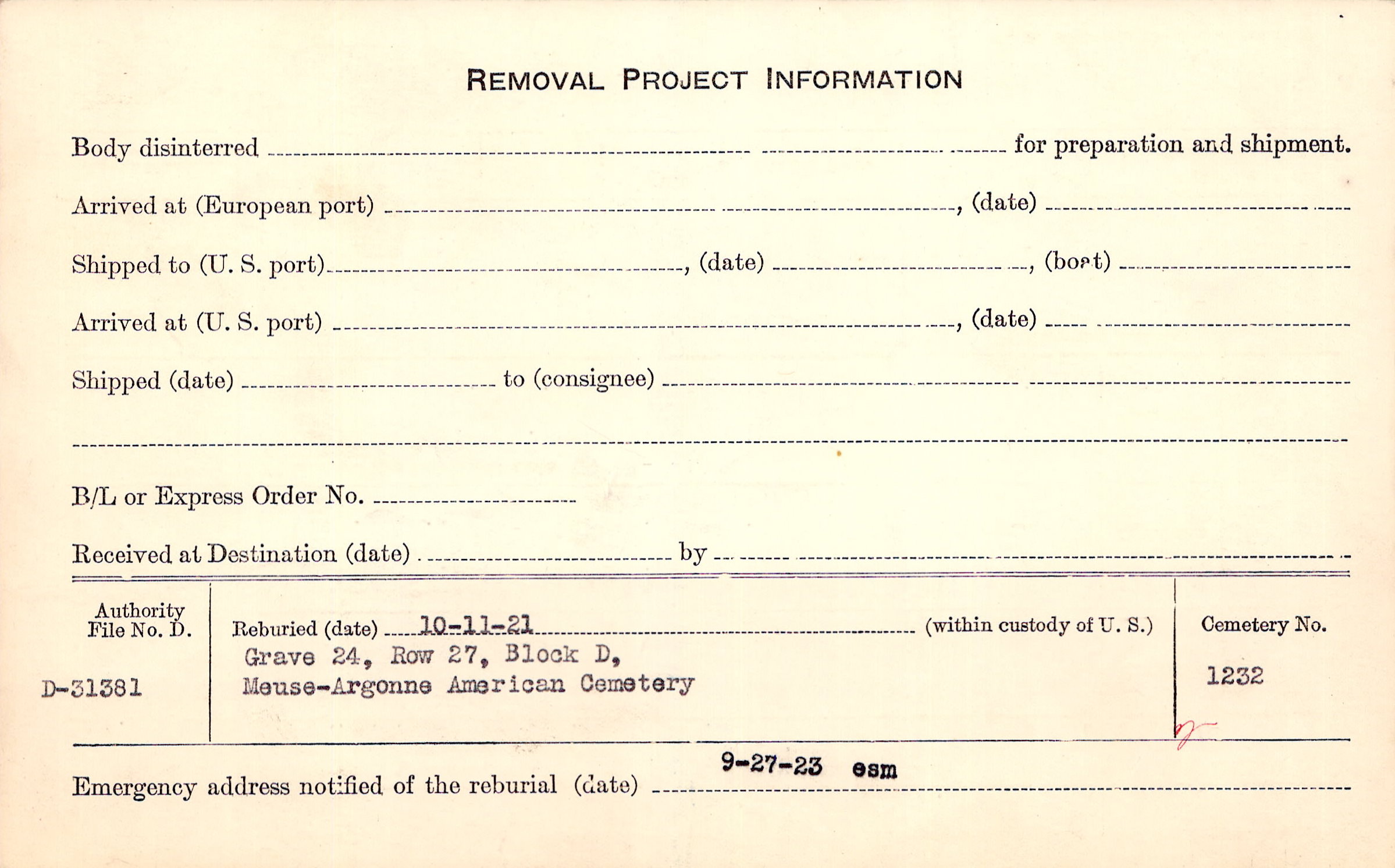 Grave 147, Section 86, Plot 3, Argonne American Cemetery, Romagne-sous-Montfaucon, Meuse