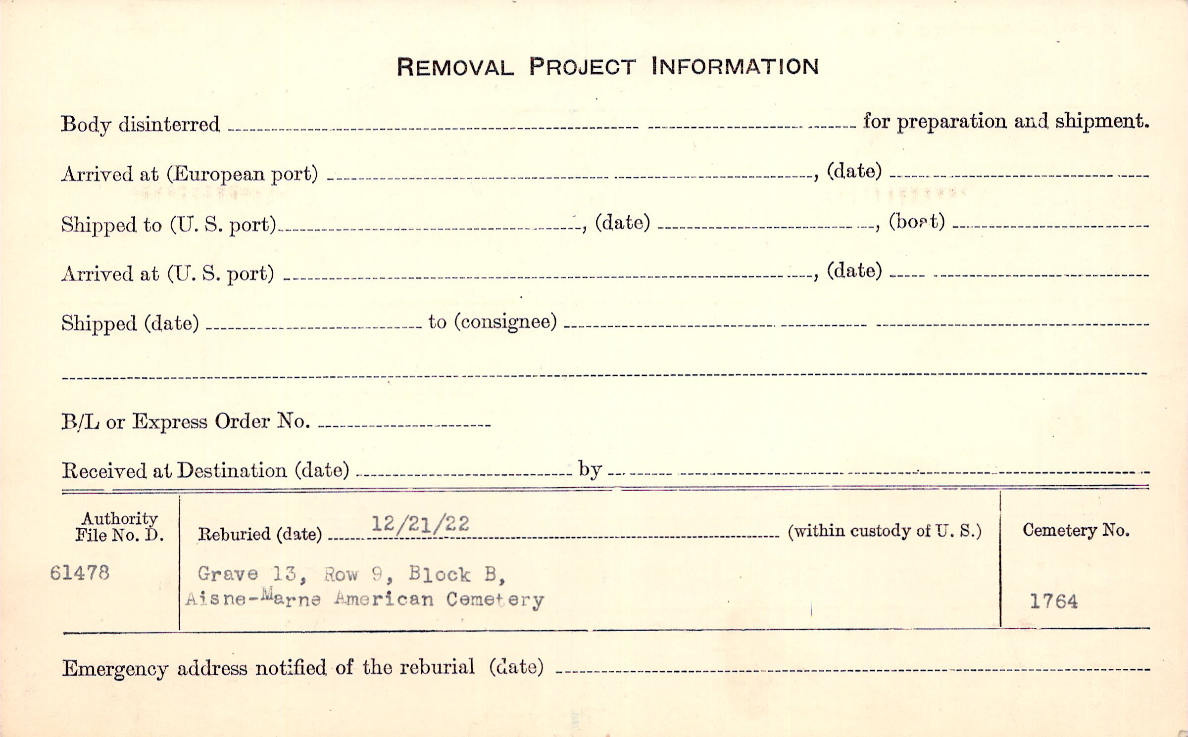| Permanent Burial in Foreign Cemetery |