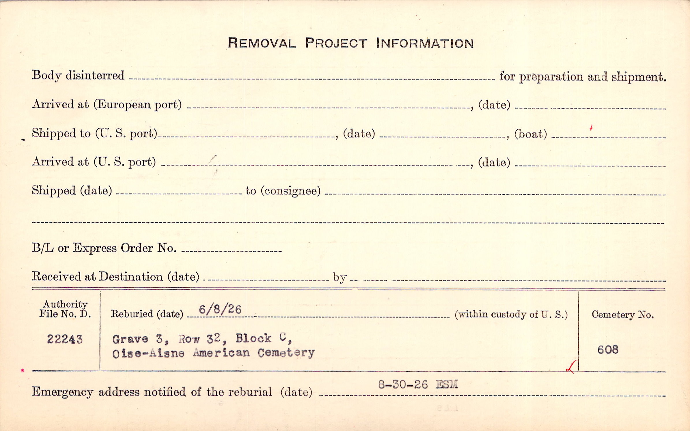 | Permanent Burial in Foreign Cemetery |