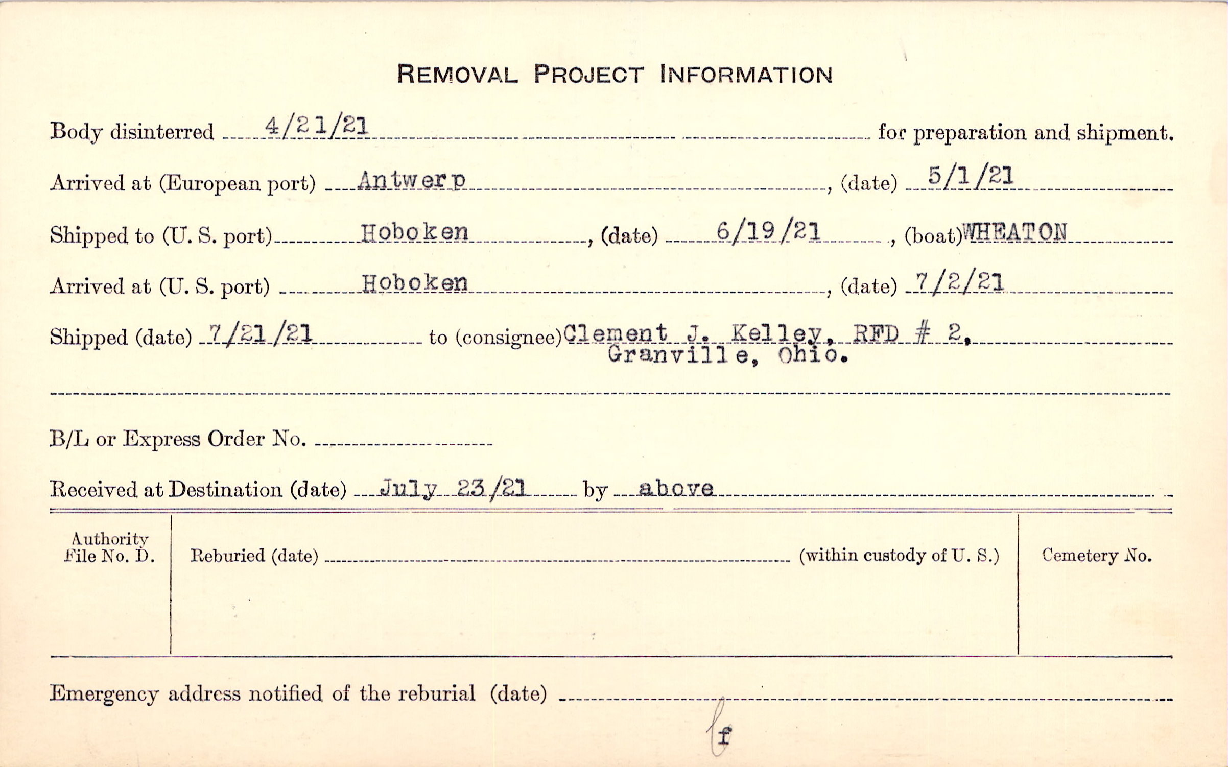 to Clement J. Kelley, RFD # 2, Granville, Ohio.