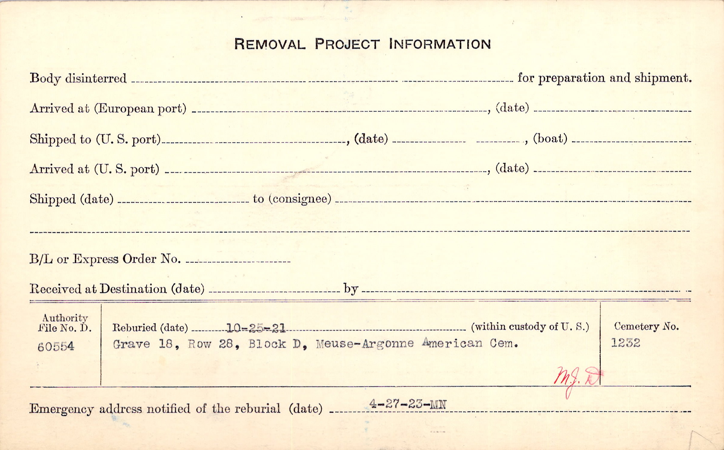 | Permanent Burial in Foreign Cemetery |